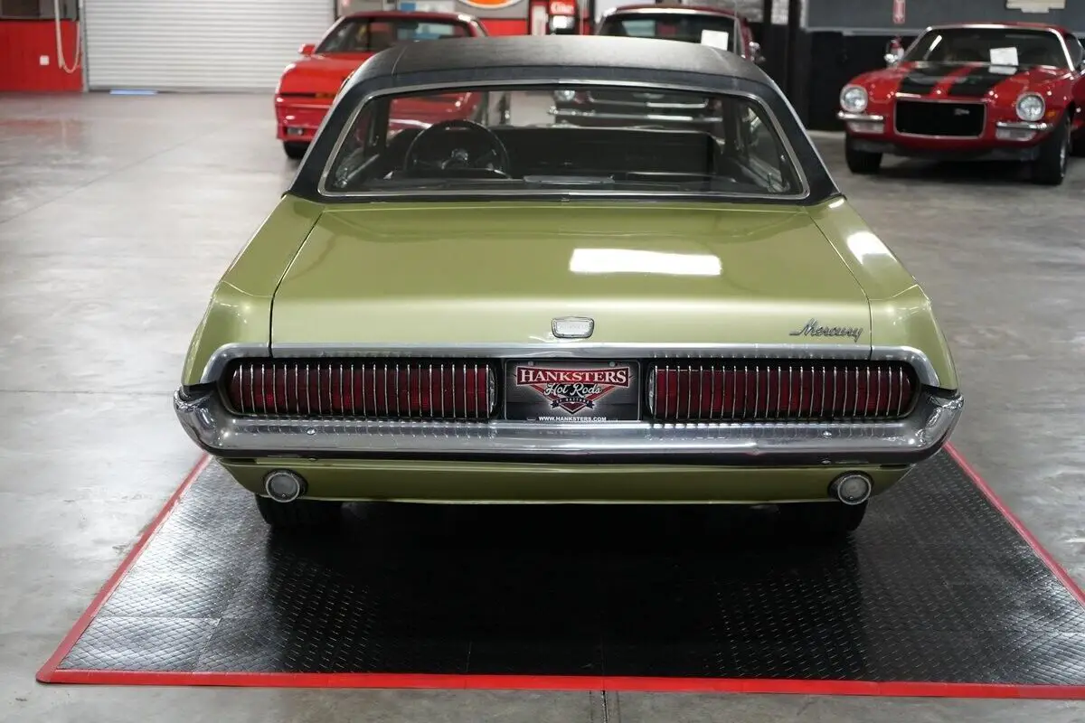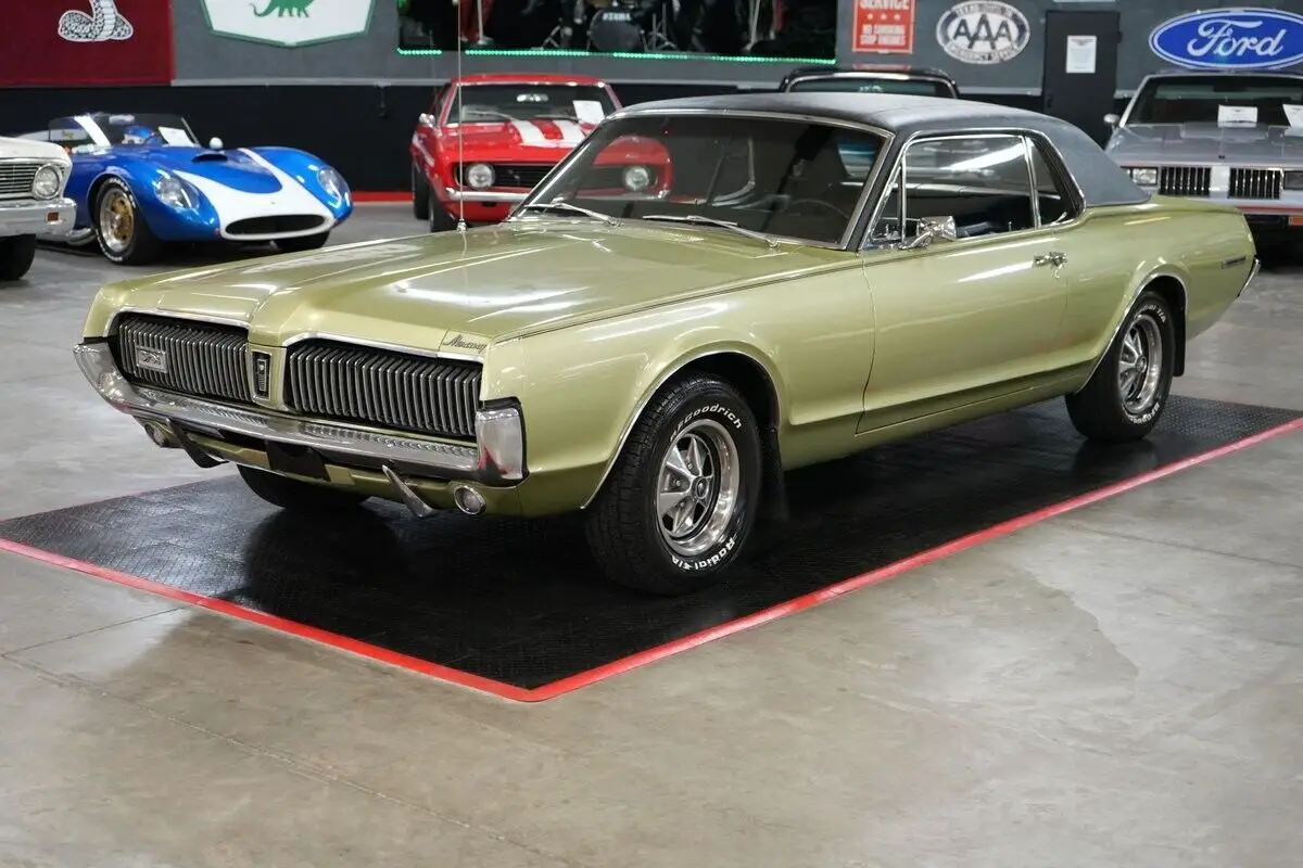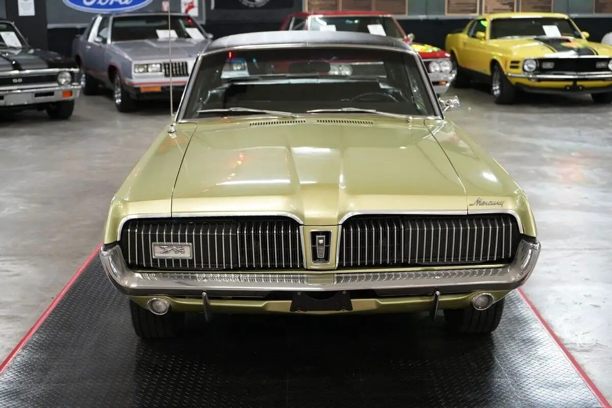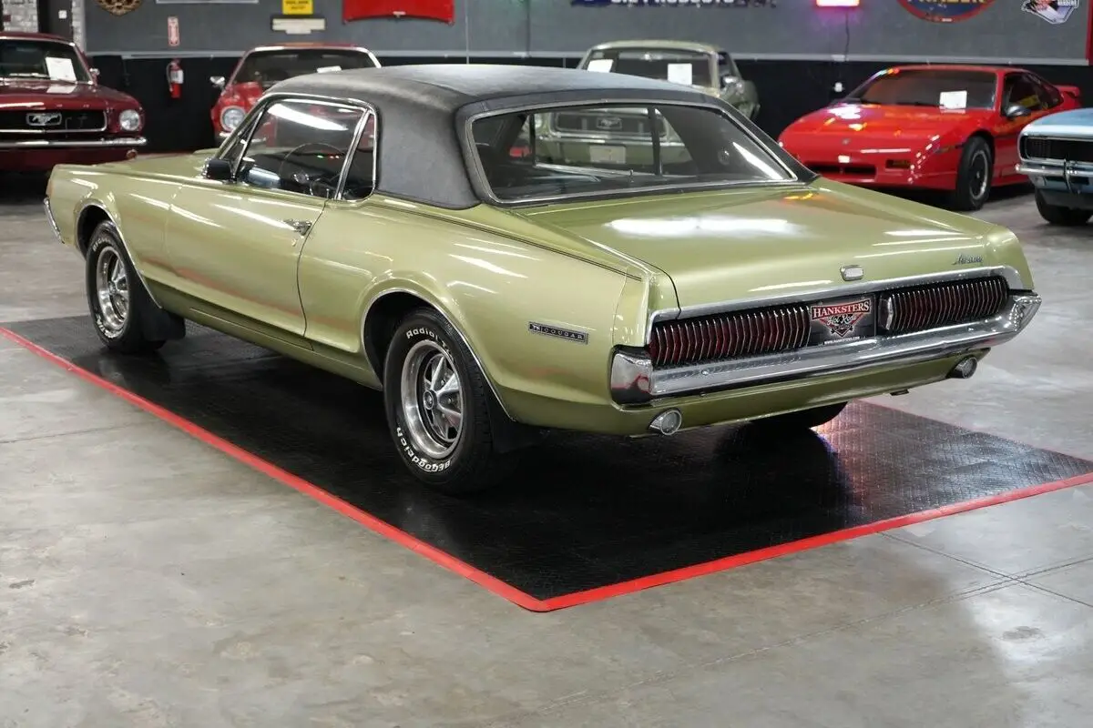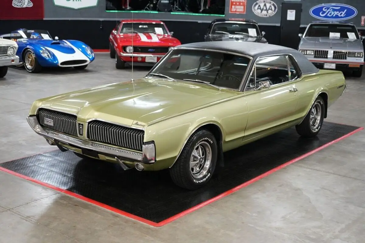 The 1967 Mercury Cougar Dan Gurney Special was a special edition of the first-generation Mercury Cougar, released as part of Mercury's marketing push to promote the Cougar's connection to racing and performance. This package was named after Dan Gurney, the legendary American race car driver and team owner associated with Mercury's racing efforts in the late 1960s.The 1967 Cougar Dan Gurney Special features "Dan Gurney Special" decals on the rear quarter panels, unique chrome trim and badging, and optional styled steel wheels. Typically equipped with a 289 V8 (2-barrel or 4-barrel), it came standard with a 3-speed manual, with optional 4-speed manual or Merc-O-Matic automatic. The interior options include high-back bucket seats and a woodgrain trim dashboard, a signature Cougar design. Optional upgrades include air conditioning and an AM/FM radio. This rare classic blends performance and style, honoring racing legend Dan Gurney. This 1967 Mercury Cougar Dan Gurney Special is a rare and well-documented classic, complete with a Marti Report verifying its authenticity. a 302 Small Block Ford V8 paired with a C4 automatic transmission and a 2.79 rear gear ratio, it delivers smooth, effortless cruising. Notable features include hide-away headlights, sequential turn signals, air conditioning, power steering, and power brakes with front disc brakes. The Lime Frost Green exterior with a black vinyl top is complemented by a black vinyl interior and 14" Mercury OEM rally wheels wrapped in BFGoodrich Radial T/A tires.