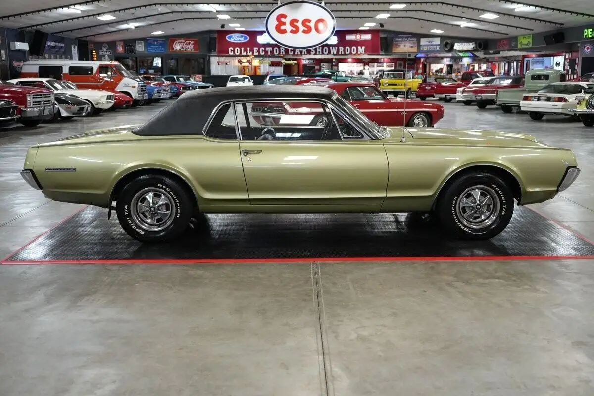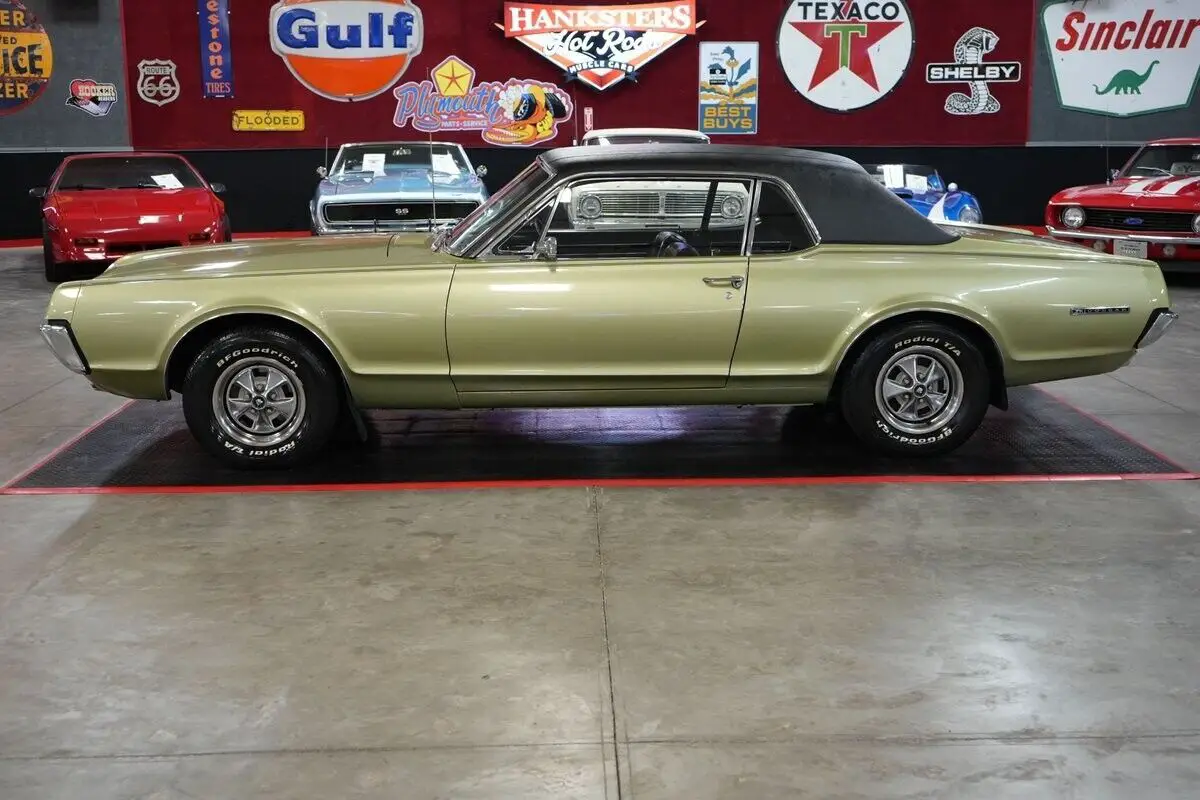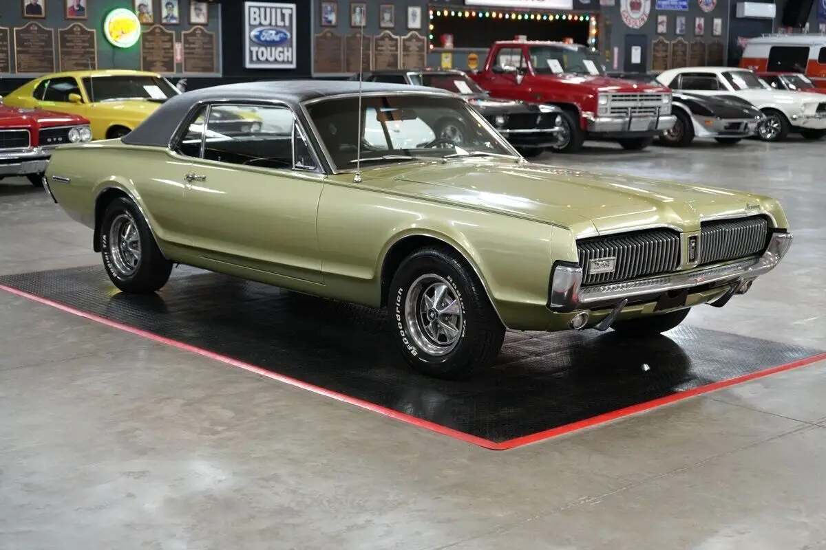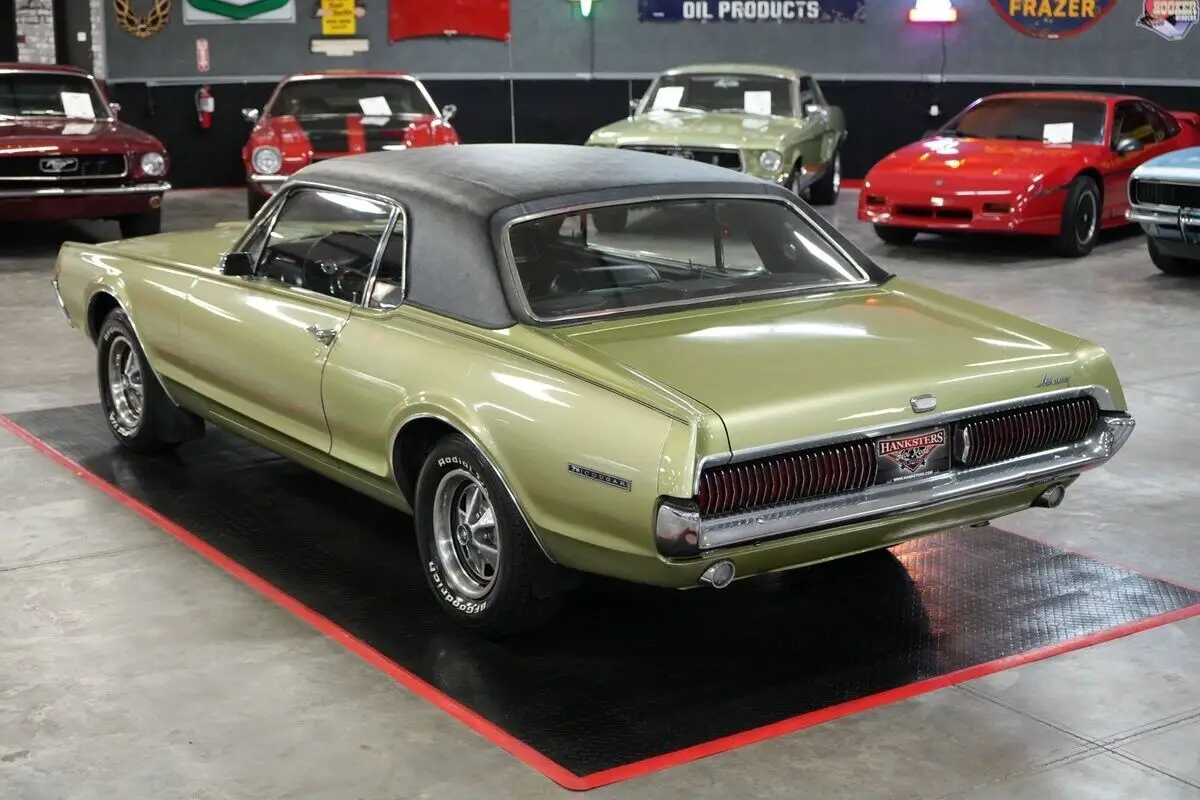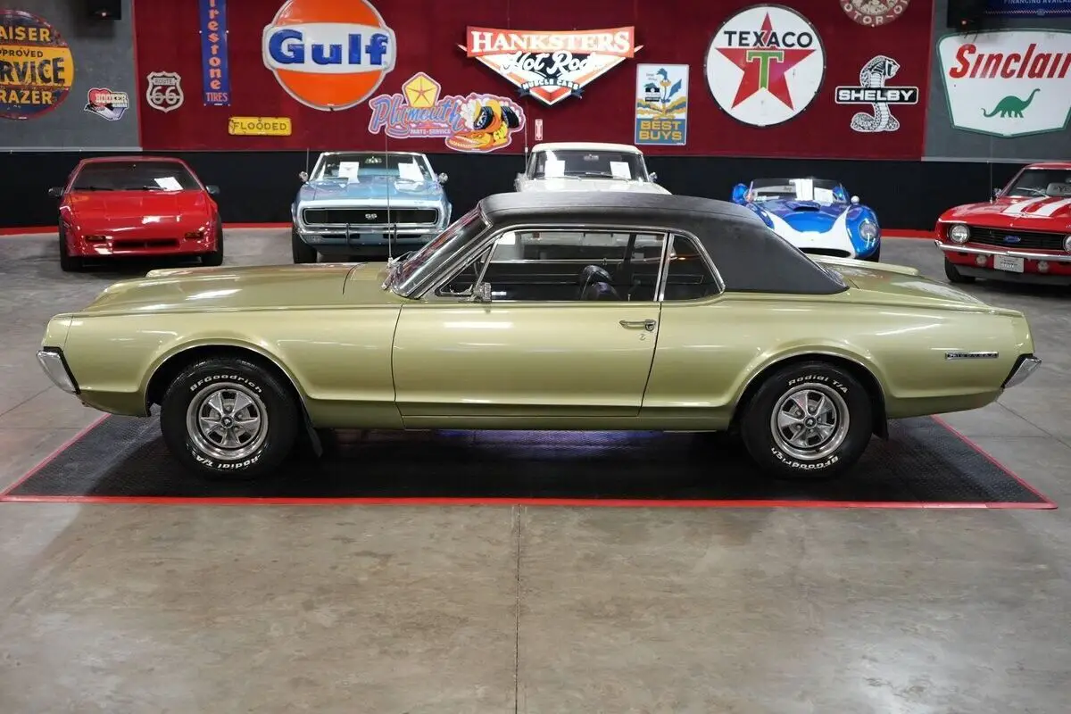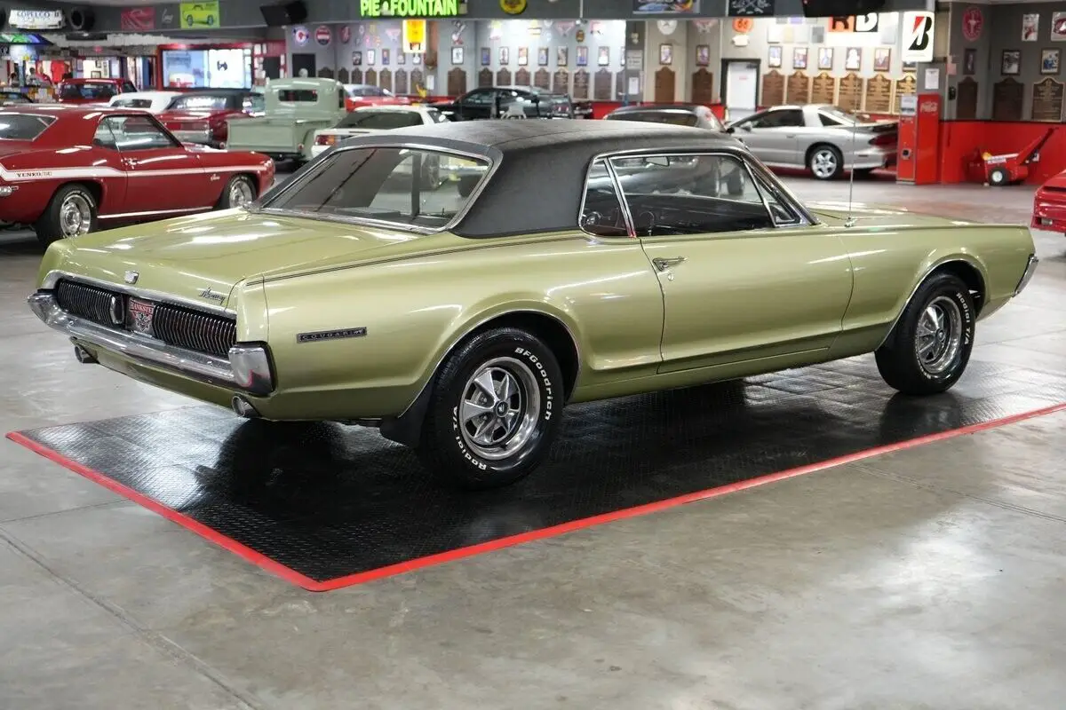 The 1967 Mercury Cougar Dan Gurney Special was a special edition of the first-generation Mercury Cougar, released as part of Mercury's marketing push to promote the Cougar's connection to racing and performance. This package was named after Dan Gurney, the legendary American race car driver and team owner associated with Mercury's racing efforts in the late 1960s.The 1967 Cougar Dan Gurney Special features "Dan Gurney Special" decals on the rear quarter panels, unique chrome trim and badging, and optional styled steel wheels. Typically equipped with a 289 V8 (2-barrel or 4-barrel), it came standard with a 3-speed manual, with optional 4-speed manual or Merc-O-Matic automatic. The interior options include high-back bucket seats and a woodgrain trim dashboard, a signature Cougar design. Optional upgrades include air conditioning and an AM/FM radio. This rare classic blends performance and style, honoring racing legend Dan Gurney. This 1967 Mercury Cougar Dan Gurney Special is a rare and well-documented classic, complete with a Marti Report verifying its authenticity. a 302 Small Block Ford V8 paired with a C4 automatic transmission and a 2.79 rear gear ratio, it delivers smooth, effortless cruising. Notable features include hide-away headlights, sequential turn signals, air conditioning, power steering, and power brakes with front disc brakes. The Lime Frost Green exterior with a black vinyl top is complemented by a black vinyl interior and 14" Mercury OEM rally wheels wrapped in BFGoodrich Radial T/A tires.