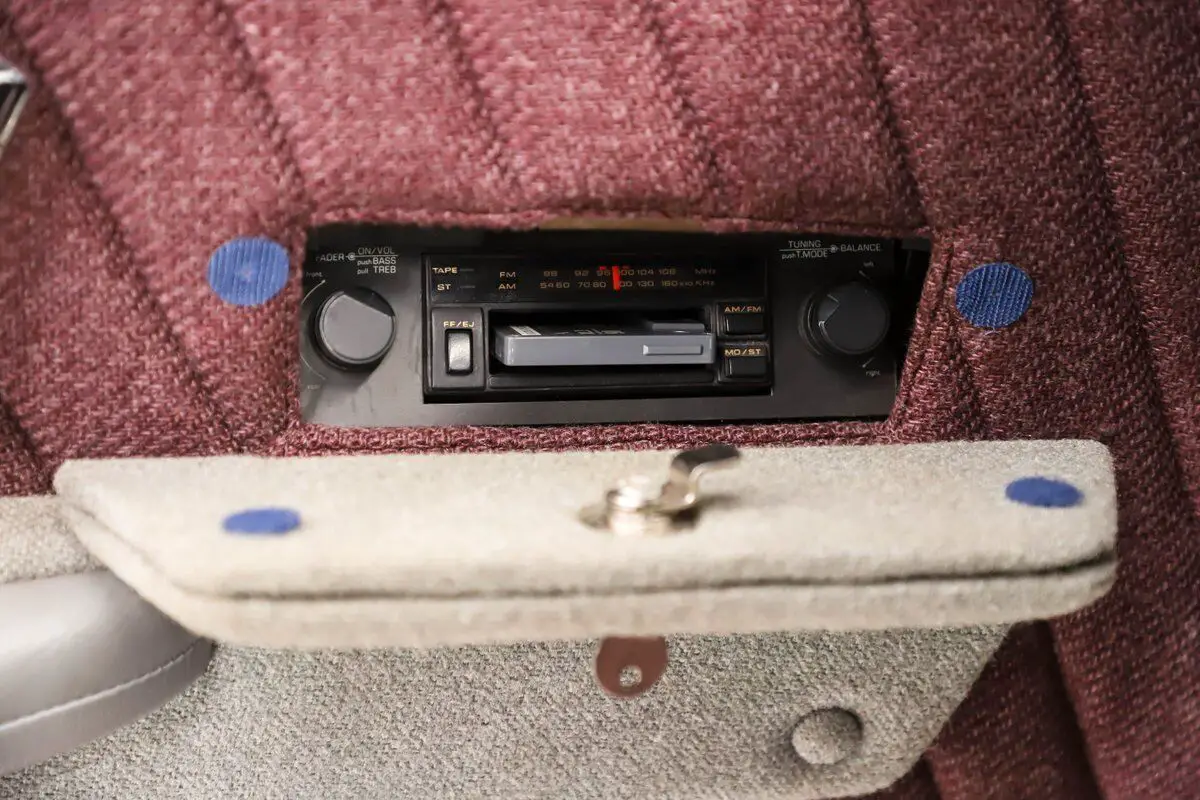 TRUNK COMPARTMENT: It was completely boxed and upholstered to match the interior. Under the trunk lid is also upholstered and so is the tire cover. The fuel filler was relocated to the trunk and the battery is hidden behind a panel.
