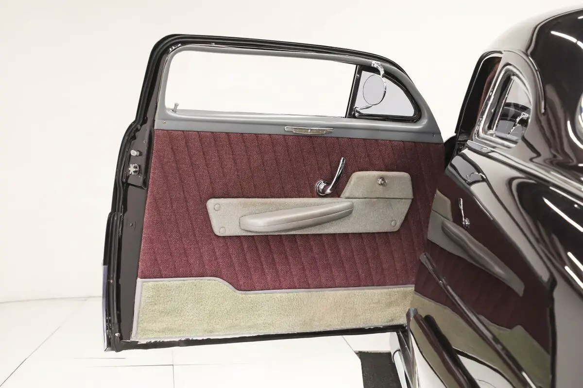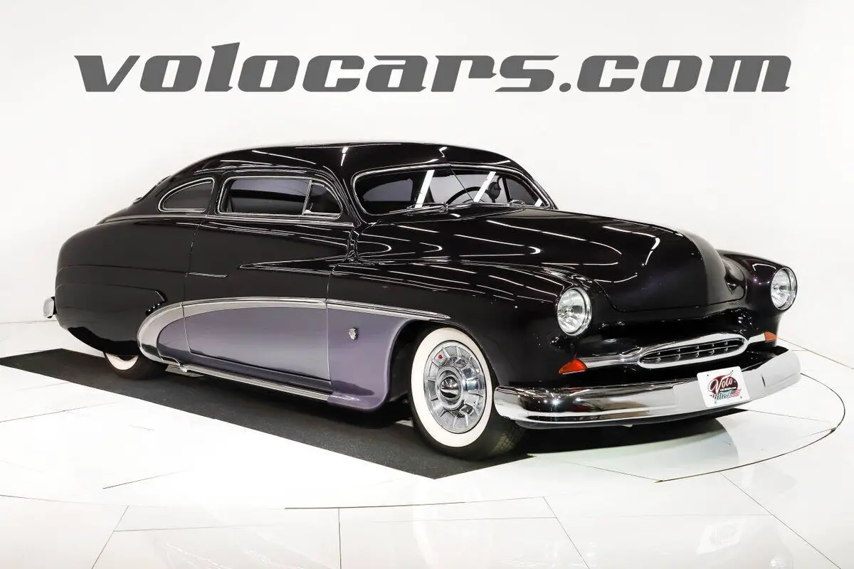 Totally tricked out lead sled that would make James Dean jealous! We just acquired this car from the gentleman that built it, he's owned it for 40 years. Acknowledged by the world renowned "King of Customizers" George Barris and winner of the prestigious "BARRIS PICK" award. This quintessential hot rod looks like it just rolled off the set of American Graffiti, and reeks of high-quality workmanship. I wouldn't want to know what a professional shop would charge today for all these body modifications and paint. EXTERIOR: Extensive bespoke body modifications! There is so much more custom work than meets the eye. The top was chopped 4 inches. The hood, trunk and doors were shaved, plus all the corners were rounded. First time I have seen Mercury emblems on the fenders act as door poppers. The lakes pipes were custom molded into the body. The grill shell and front pan were molded. The headlights were frenched, and parking lights were removed. The turn signals are integrated in the Pontiac grill that was lengthened by 10 inches. The front bumper and the bumper guards were removed, the holes were filled, and it was chromed. Custom bubble fender skirts that have a rolled top edge and 3 teeth were added in the front scoop. The taillights are custom made and the rear pan was molded. The rear bumper was smoothed and has Pontiac bumper guards. The antenna was removed, and the gas door was filled in. It has 1953 Buick side moldings and a beautiful custom mixed Grape and Lavender paint job with a urethane clear coat. Very practical v-but windshield plus working vent and rear 1/4 windows. Cadillac sombrero hubcaps with bullet centers sitting on classic wide whitewall radial tires. INTERIOR: It's a custom Interior by Kasper! Up front is a power Cadillac bench, and in back is a wraparound Thunderbird seat. Both seats have a fold down arm rest. The stereo is cleverly hidden in the driver's door panel and has a hidden antenna too. Courtesy lights are also hidden under the rear seat. The overhead console has power window switches and map light. On the column is a tachometer, vintage Stewart Warner amp and oil gauge. 3 on the tree manual shifter. The custom mounted side view mirror is much more useful than expected. This interior is just as comfortable as it is beautiful! ENGINE COMPARTMENT: Picture perfect! The performance built 1950 Mercury flathead V-8 features dual Stromberg 97 carbs, Edmond's intake, Edelbrock finned high compression heads and a Mallory ignition. It's been upgraded to a 12 volt charging system with an alternator. The stainless-steel panels all around the engine bay and a brass top radiator really dress things up nicely. The chrome hood hinges are a nice touch too. TRUNK COMPARTMENT: It was completely boxed and upholstered to match the interior. Under the trunk lid is also upholstered and so is the tire cover. The fuel filler was relocated to the trunk and the battery is hidden behind a panel. UNDERSIDE: Smoother than a Cadillac! The suspension was lowered 3" in the front and 4" in the back for the perfect stance; it still feels like you're riding on a cloud. We replaced the rear shocks. The emergency brake is hooked up. Now equipped with a dual exhaust system that has Smithy mufflers and flame throwers! The fuel pump has been upgraded to an electric unit that is mounted externally. Looking up at the modified flathead engine it is nicely painted with no visible leaks. The 3 speed manual transmission also looks nice and clean. All the floorboards and frame appear to be solid and rust free. SERVICE: Our lead mechanic thoroughly inspected this car and we replaced the rear shocks, replaced the master cylinder, and replaced the right front wheel seal. CONCLUSION: Exquisite craftsmanship is evident in this build! It's a timeless hot rod that has all the makings of a classic because it already is one! Cool, comfortable, and custom describe this lead sled perfectly! I drove it and could not believe how smooth it rode and that was on a bumpy road! For nearly 30 years, I, Jay Grams, have personally written the highlights for almost every car in our collection. What I provide is my professional opinion based on my experience with these vehicles. However, opinions can vary, and I strongly recommend a personal inspection to form your own view. Our sales team is always available to answer any questions you may have. One great option is to request a personalized walk-around video, where we can showcase the car and share our team's insights. **Our cars are displayed within a museum setting. If you are interested in a specific vehicle, please schedule an appointment with a salesperson to view it. Without an appointment, there is an admission fee to enter the showroom. If you decide to purchase a car, your admission will be refunded, and you'll receive a one-year museum membership. 815 385 3644 9-5 central Sales@volocars.com Answered ASAP Dual carbs Aluminum heads Smithy mufflers Power windows Power doors Power seat Power trunk Armrests Overhead console Stereo Tachometer Finished trunk Flame throwers Chopped Shaved Decked Skirts Lake pipes Smoked glass Whitewall radials