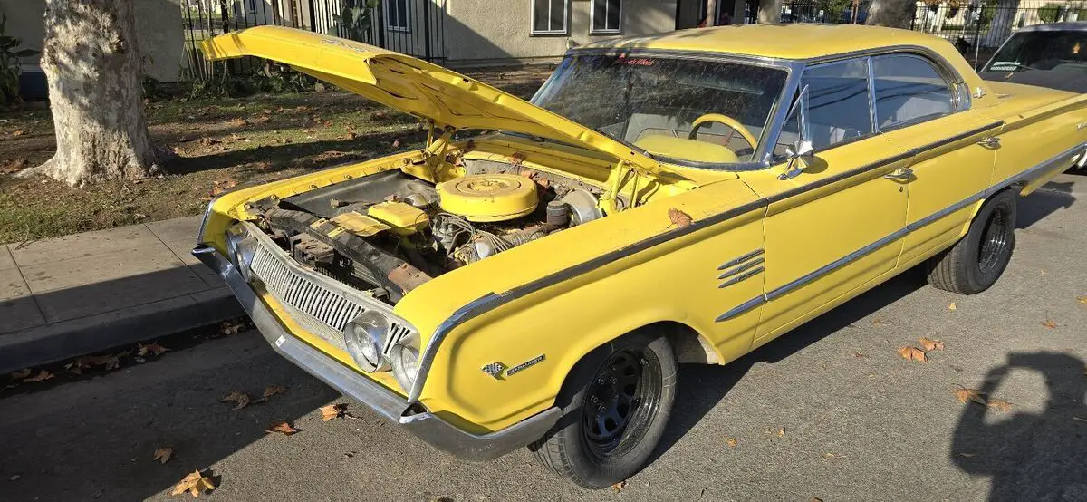 A rare 1964 Mercury Montclair sedan. Has staggered tires, with new rims. Needs to be rebuilt or an engine swap