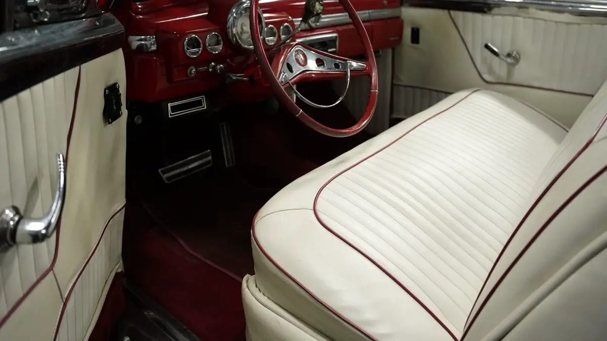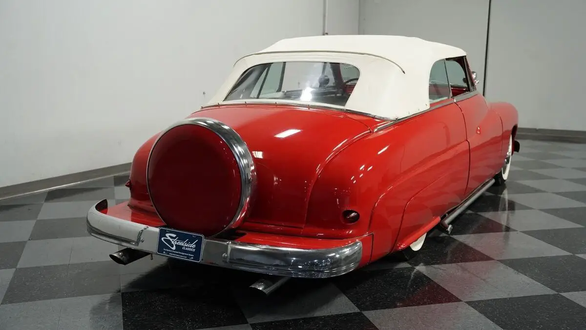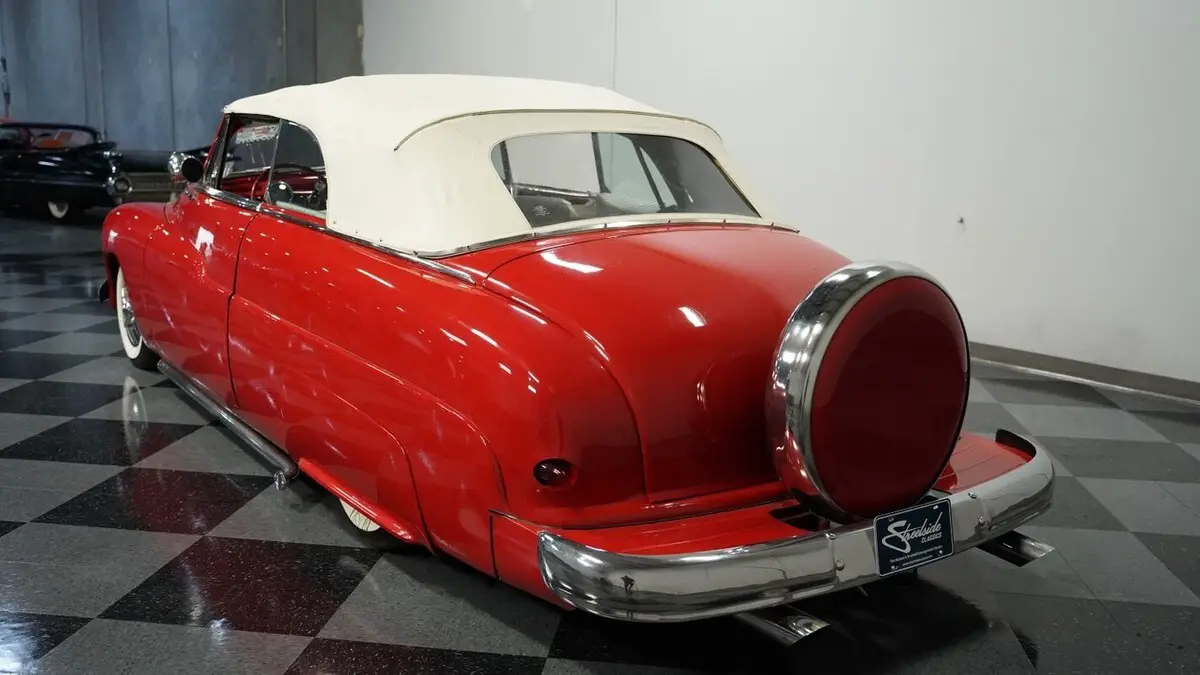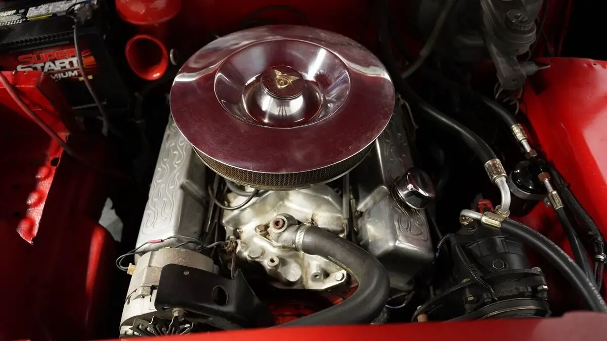 Vehicle Original VIN : 9EL035478• 350 V8 Engine • 700R4 4-Speed Automatic Transmission • Edelbrock Carburetor • Dual Exhaust • Cherry Bomb Mufflers • Power Disc Brakes • 9-inch Rear Axle • A-Arm Front Suspension with Shocks • Leaf Spring Rear Suspension with Shocks • Fiberglass Fan Shroud • Flame Billet Valve Covers • Red Paint • 15" Wheels with 215/70R15 Whitewall Tires • White Vinyl Convertible Top • Continental Kit • Static Dropped Stance • White Vinyl Interior with Red Piping • Split-Bench Seating • Power Windows • Column Shifter • Power Steering • AM/FM Cassette Player