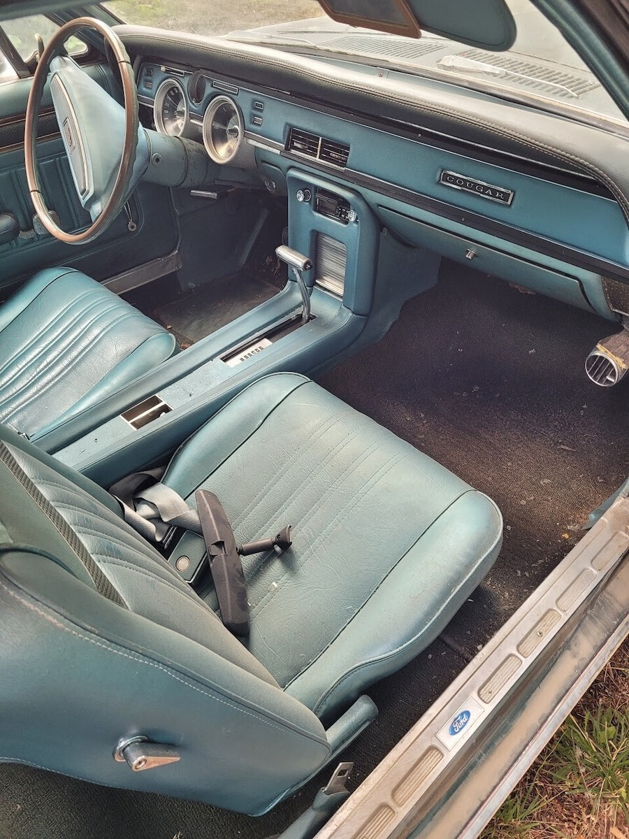 1968 Mercury Cougar up for sale. 3-speed, automatic 302. Original Los Angeles vehicle. This is a straightforward project car. No Trades.Mechanical:Original 302 engine runs, however the fuel in the tank is bad and the carburetor needs a rebuild. While in need of a major refresh, the engine is very much a solid foundation for a good build but will need an investment for optimal performance. Includes a/c. Headlight actuators work.The BodyVery small bit of rust from a spot just above the windshield (due to a tear in the car cover fabric) that will need attention. Underside tear in the floor panel; this will need a re-weld or replacement of that panel – not a difficult task as the cosmetics are not critical in this area. No further body issues. This is a solid, original body that will clean up with a minimum of effort.Interior:The interior is in good shape overall. Many of the chromed surfaces will need attention or replacement. Current owner replaced the dash. Remainder of interior is original. The dash, front and rear seats, upholstery and headliner are intact and clean. Current owner added original headrests to the front seats.No Trades.Location: Gig Harbor, Washington