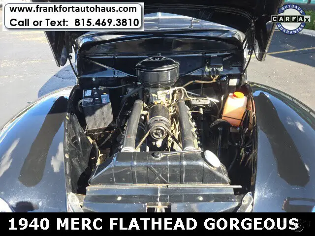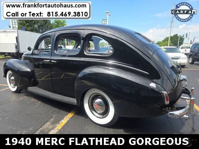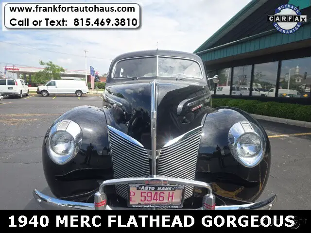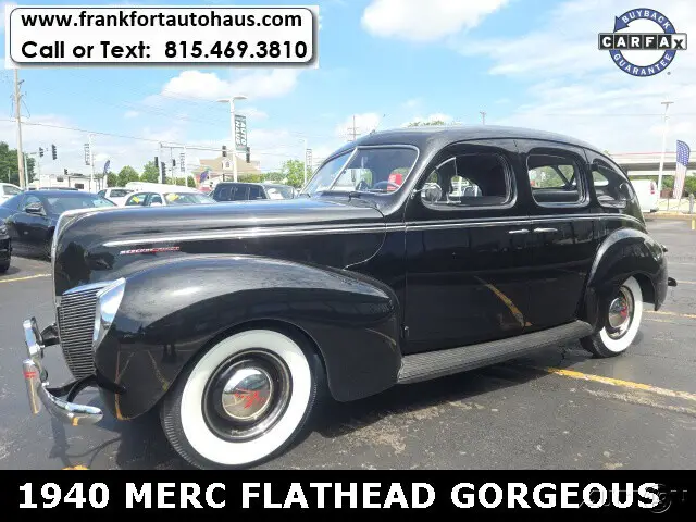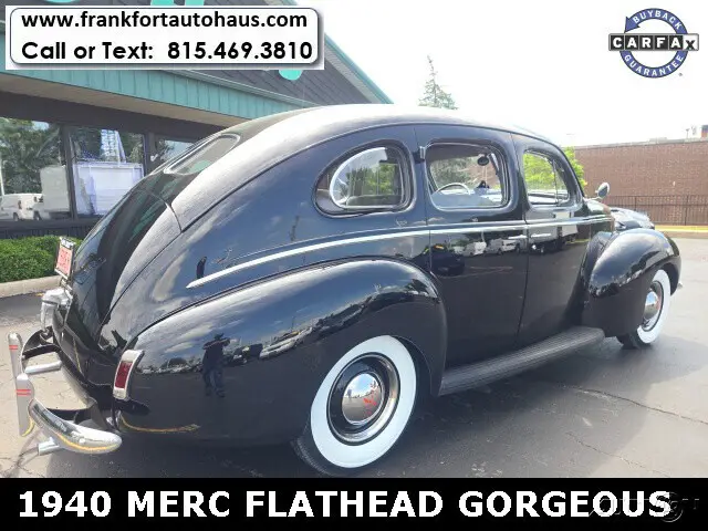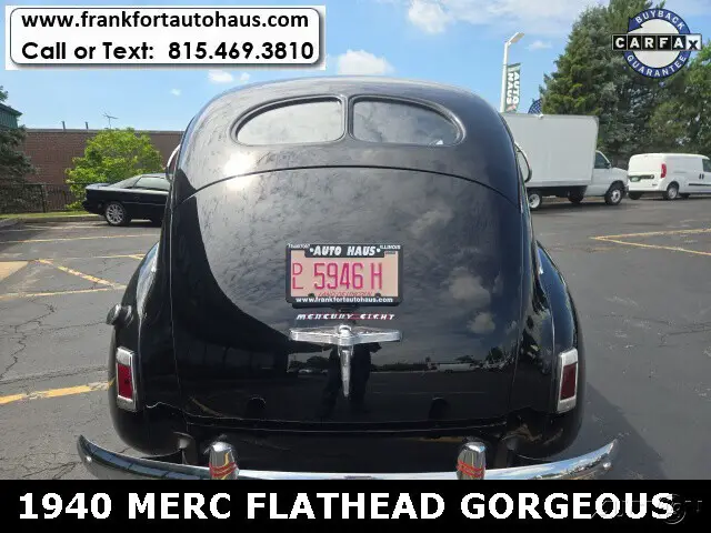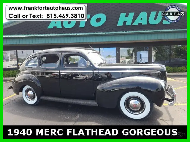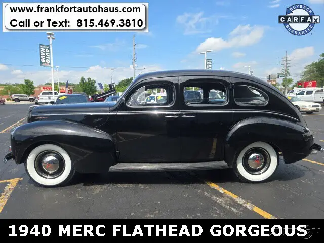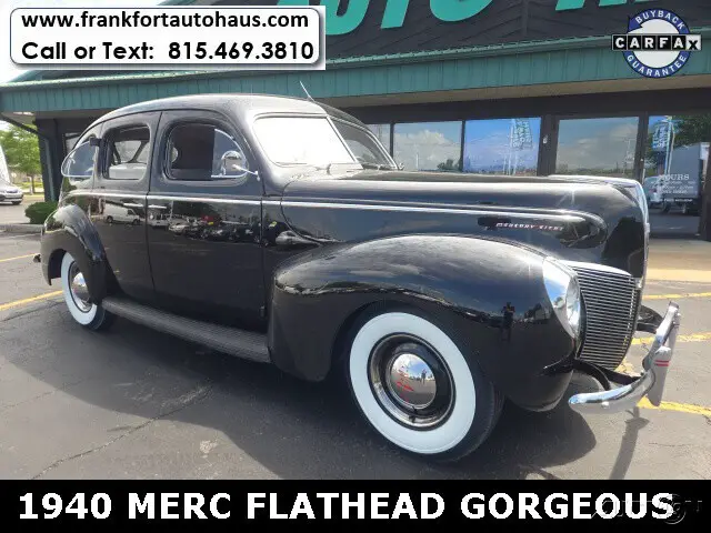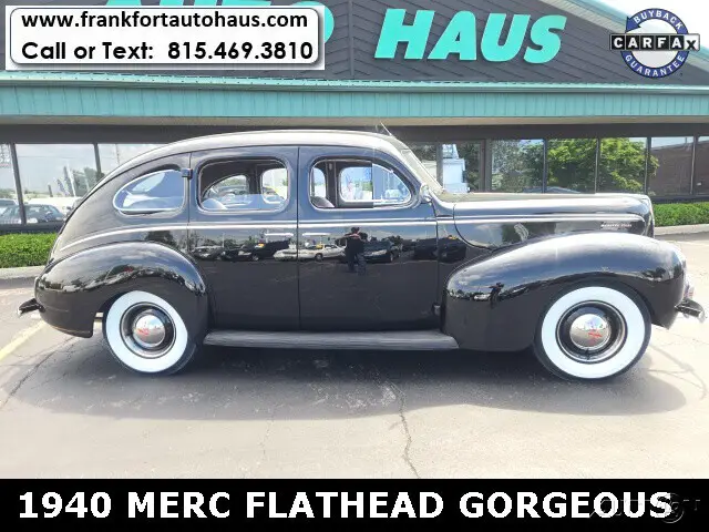 1940 Mercury , 4 door Flathead V/8 RWD 3spd BlackWant to learn more? Frankfort Auto Haus is a family owned dealership established since 1978. I personally buy and drive every vehicle I sell, one of the reasons I have been in business over 40 years and have 1000's of happy customers. Every vehicle I sell comes with a free car fax vehicle history report available on our website www.frankfortautohaus.com . We can arrange low cost financing and shipping to your door worldwide. Visit us today at 19915 s. La Grange Road,Frankfor, Il 60423. (30 min south of Chicago). Contact Information: TEXT or CALL us at 815-469-3810.