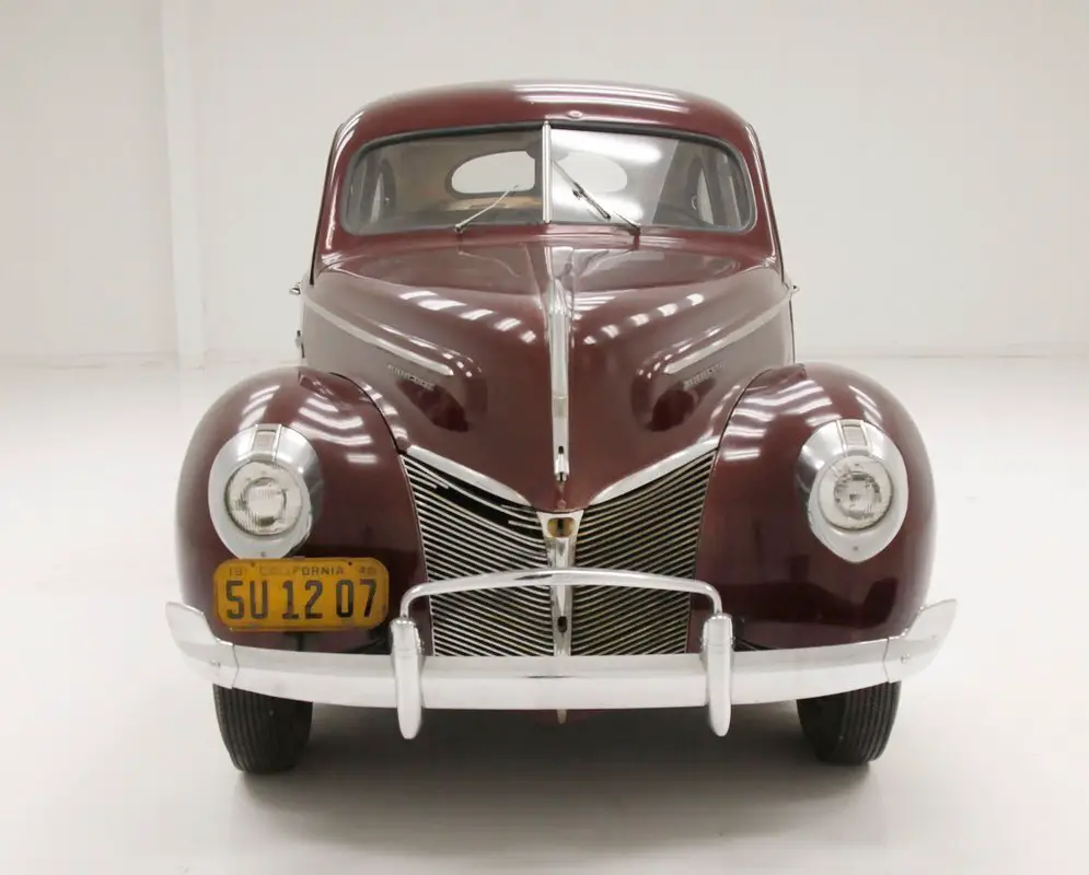 1940 Mercury 8 Sedan Reminiscent of the 1940's design line, this car drips full art deco from the era. The final year for the teardrop headlight bezels on this second year offering from Mercury, a 2-piece grille with its chrome bars and running boards now ready to almost disappear, this car presents with upscale class and in sedan form. The beneficiary of a restoration in the past and fresh out of long term storage, but showing some age on a few areas. Coming from a consignor who has a collection larger than life, this one is being turned loose in our Hallowed Halls and patiently waiting for someone to take over and bring forth its award winning capabilities. NO TITLE-SOLD ON A BILL OF SALE ONLY Exterior The overall designs they are-a-changin' with disappearing running boards, integrated teardrop headlights in the fenders, a belt line trim spear, simple curved solid bumper complete with optional guards, bulbous fenders, and a rounded sloping down roof line and trunk lid. The beginnings of aerodynamics are in their infancy with the design of this car. The chrome is lightly pitted but still retains its shine and the metal panels are fairly straight. Invasive rust rears its head on the right side of the lower front valance and a few spot in paint repairs are noted throughout the body. A few bars of the grille have broken off and more invasive rust is showing on the rears of the front fenders. The running boards, with their ribbed covers, remain intact and strong, doing a fine job of connecting the graceful pontoon fenders. All of this steel is bathed in a classic hue of maroon, which has areas of light application and some notable chipping. Deeply treaded 16-inch pie crust wide whites are wrapping the maroon steel wheels with chrome beauty rings and dog dish chromed centers. The 1940's have started off with a bang. Interior Cream faced gauges sit in front of the driver and are held in chrome bezels, thin and long, more akin to a spaceship than a sedan. The entire dash is full metal jacket and is covered in body matching maroon that meshes nicely with the cream bakelite knobs sprinkled across the driver's side of the dash. A rusted and broken electric shaver style speaker grille sits front and center in the dash and just above is the original AM radio. The original steering wheel displays with multiple cracks and the full round horn ring, but is missing its center with the traditional Mercury 8 call out. Saddle brown vinyl covers the seats on both large benches, with some discoloration in the tuck and roll inserts and a long seam separation on the passengers front bench. The door panels are a stained ivory broadcloth with some carpeting down low finish to it. Worn and soiled gold carpeting covers the front floors front and rear and a slightly wrinkled ivory headliner hangs above. Drivetrain A 239ci V8 complete with dark gloss gray/blue cylinder heads grace this lightly patined engine bay. A single Holley 2-barrel carburetor sits atop the intake manifold and we note the oil bath air cleaner has been removed but can be found in the trunk along with the optional fender skirts. Bolted to the back of this sought after mill is a 3-speed manual transmission which sends power back to a 3.54 geared rear axle. Undercarriage Definitely once restored but now showing some light patina and age along with surface rust for the strong X frame, sturdy body hangers, rockers and lightly sprayed black floor pans. A surface rusted single exhaust is noted and seen are transverse leaf springs for the suspension all around, and Lockheed hydraulic drum brakes are in use. Drive-Ability As with any car fresh out of long term storage some TLC will be needed before ignition occurs. That said, we did not attempt to start the engine, but did verify the ability to turn it over by hand. Overall a great car, formerly restored but showing some age in a few areas. An excellent undercarriage, clean engine and bay, a body oozing Art Deco styling and a very comfortable interior. Like a fine wine it has aged very well, will you be the lucky one to take a sip? NO TITLE-SOLD ON A BILL OF SALE ONLY Classic Auto Mall is a 336,000-square foot classic and special interest automobile showroom, featuring over 850 vehicles for sale with showroom space for up to 1,000 vehicles. Also, a 400 vehicle barn find collection is on display. This vehicle is located in our showroom in Morgantown, Pennsylvania, conveniently located just 1-hour west of Philadelphia on the I-76 Pennsylvania Turnpike. The website is and our phone number is 855-201-7026. Please contact us anytime for more information or to come see the vehicle in person.