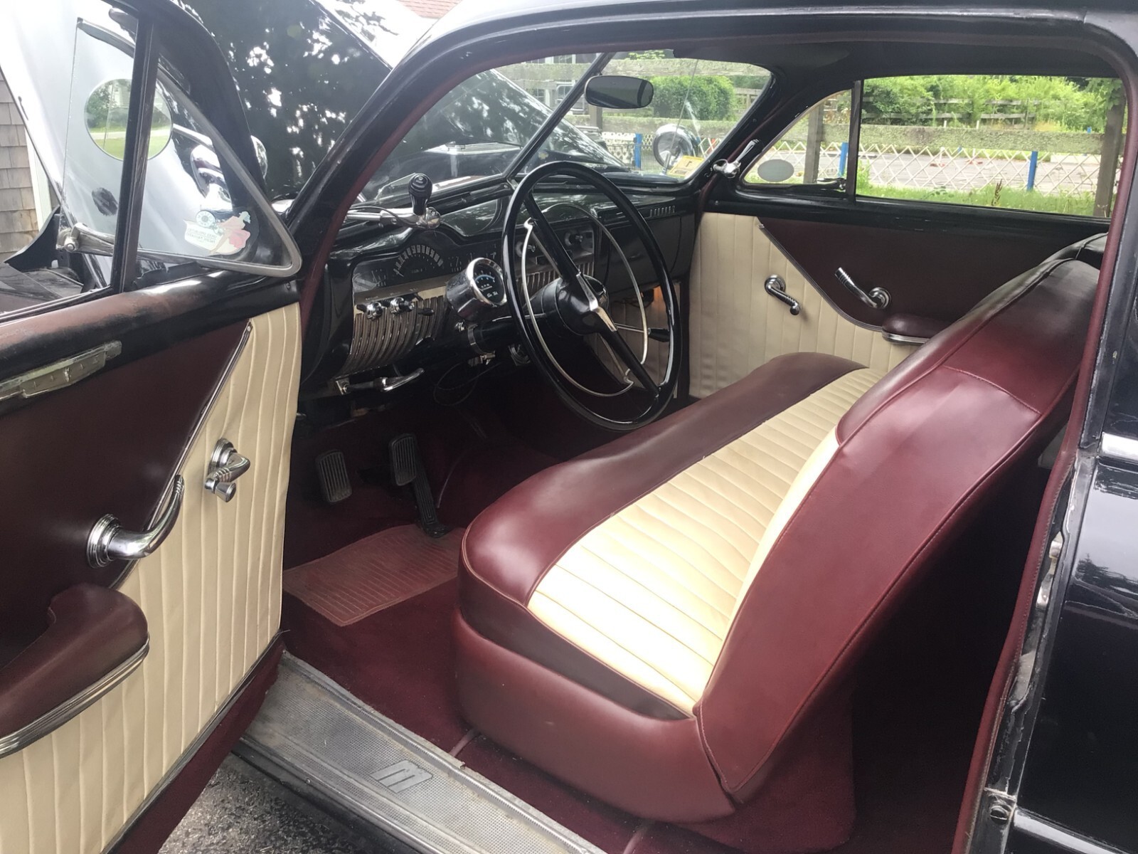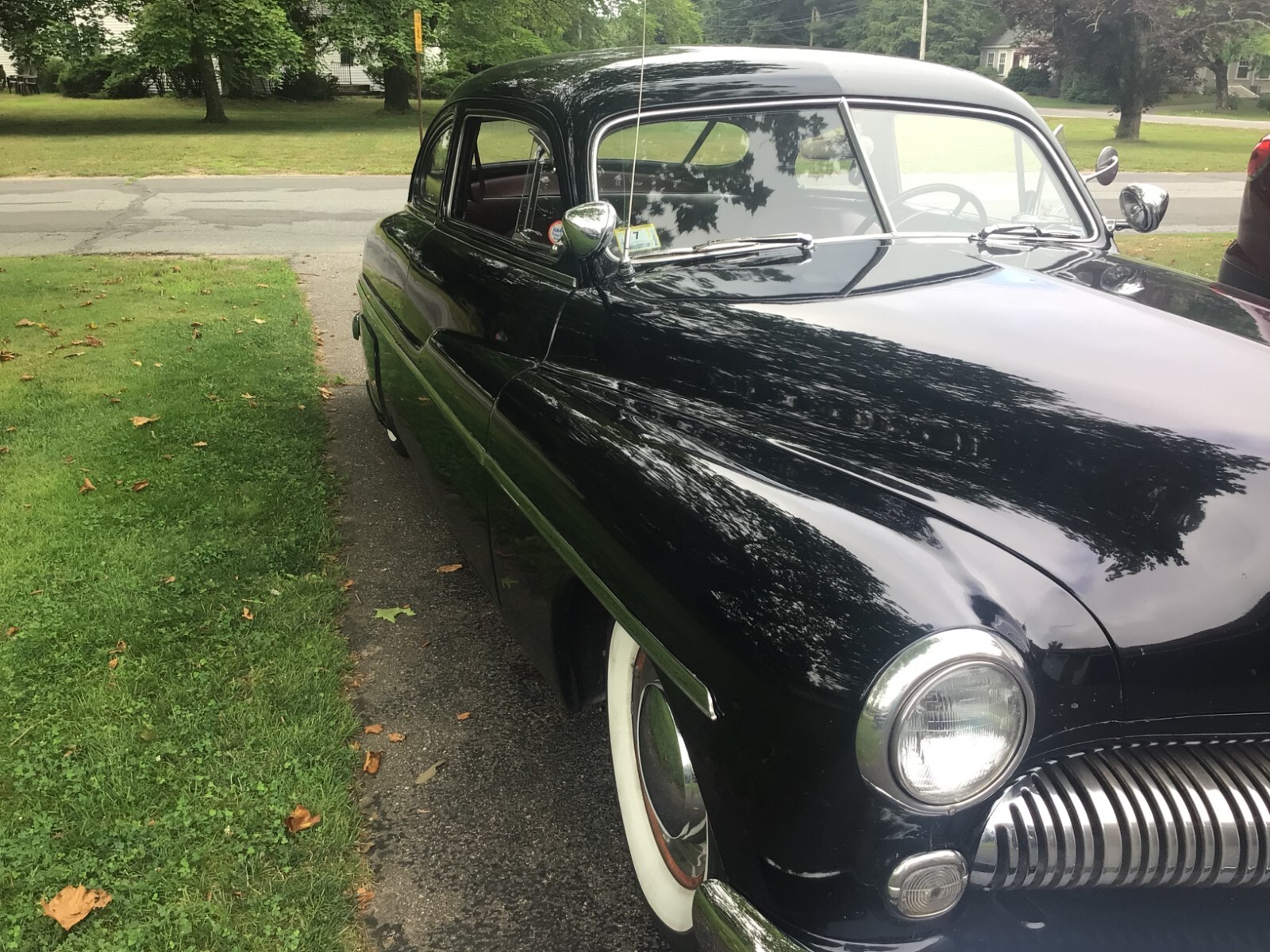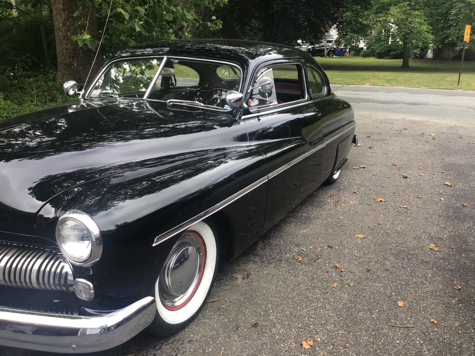 1950 Merc Coupe....Black with Burgundy and Cream Interior. Cadillac Motor...Runs great.....3 Speed Standard Shift with Overdrive..Solid Original Body....1949 3 Piece Rear Window...Rides Good...Handles Good....Slightly Lowered Front and Rear...Naugahyde Interior in Perfect Condition....Same Owner for past 37 years