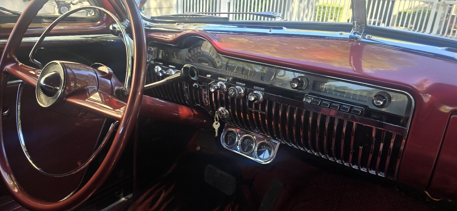 The 1951 Mercury Custom is a highly modified vehicle with a burgundy exterior and updated drivetrain. The owner has had it for 2 years and has mainly used it for car shows. With only 47,000 miles on the clock, this classic car runs smoothly and is a standout addition to any collection.