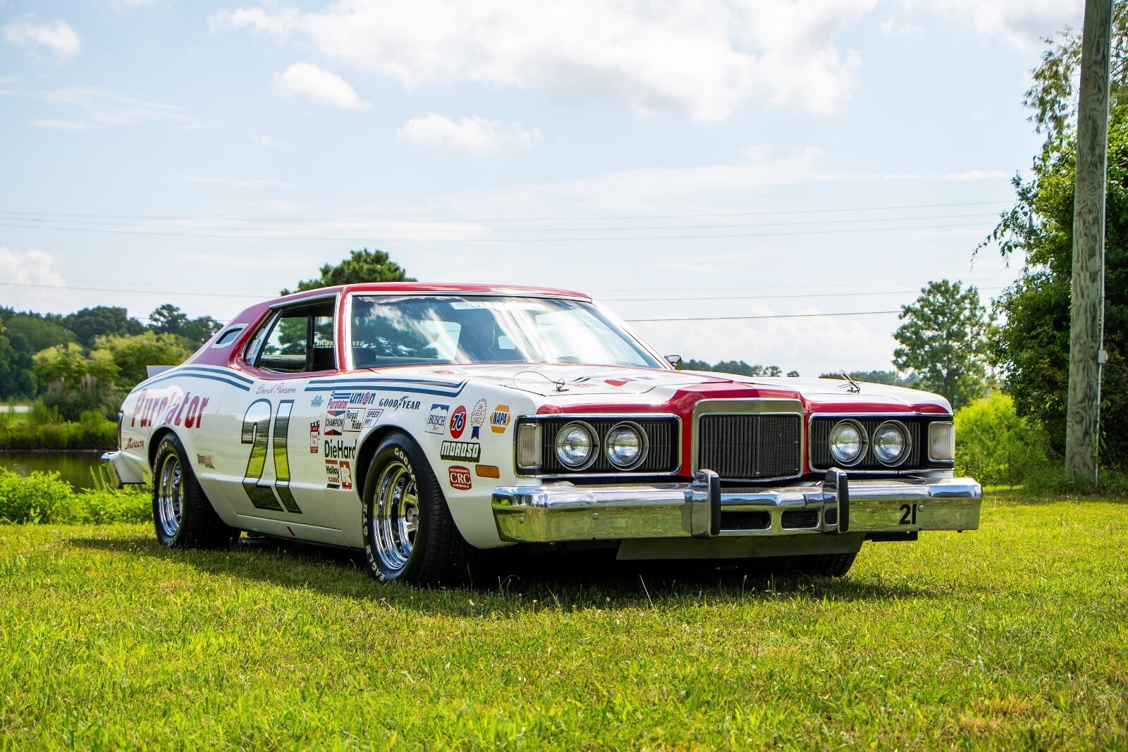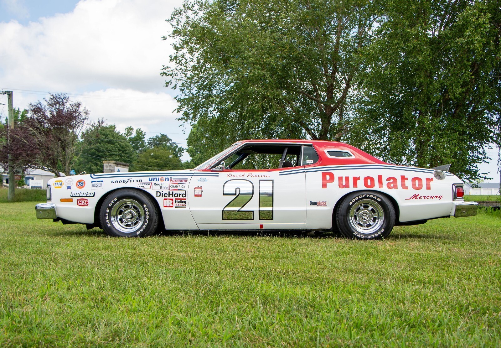1976 Purolator Mercury – Rare David Pearson Tribute Car Own a true piece of NASCAR history. This 1976 Purolator Mercury is one of only two known to exist and is an exact tribute to David Pearson’s iconic #21 car—the first vehicle to win NASCAR’s prestigious “Triple Crown” in the same year. This car is personally signed by David Pearson himself, along with other NASCAR legends. Even more impressively, Pearson drove this very car for 10 laps at the historic Darlington Raceway. Expertly built by Freddy Brookshire (long time friend of the silver fox) of Brookshire Motorsports, this car is a show-stopping combination of authenticity and craftsmanship. It comes with an incredible collection of rare, hard-to-find ("unobtainium") NASCAR memorabilia, making it a dream package for collectors. The car runs and drives beautifully powered by a 460 with internal parts from Holman and Moody and includes power windows and other creature comforts—bringing together classic racecar flair with modern-day usability.