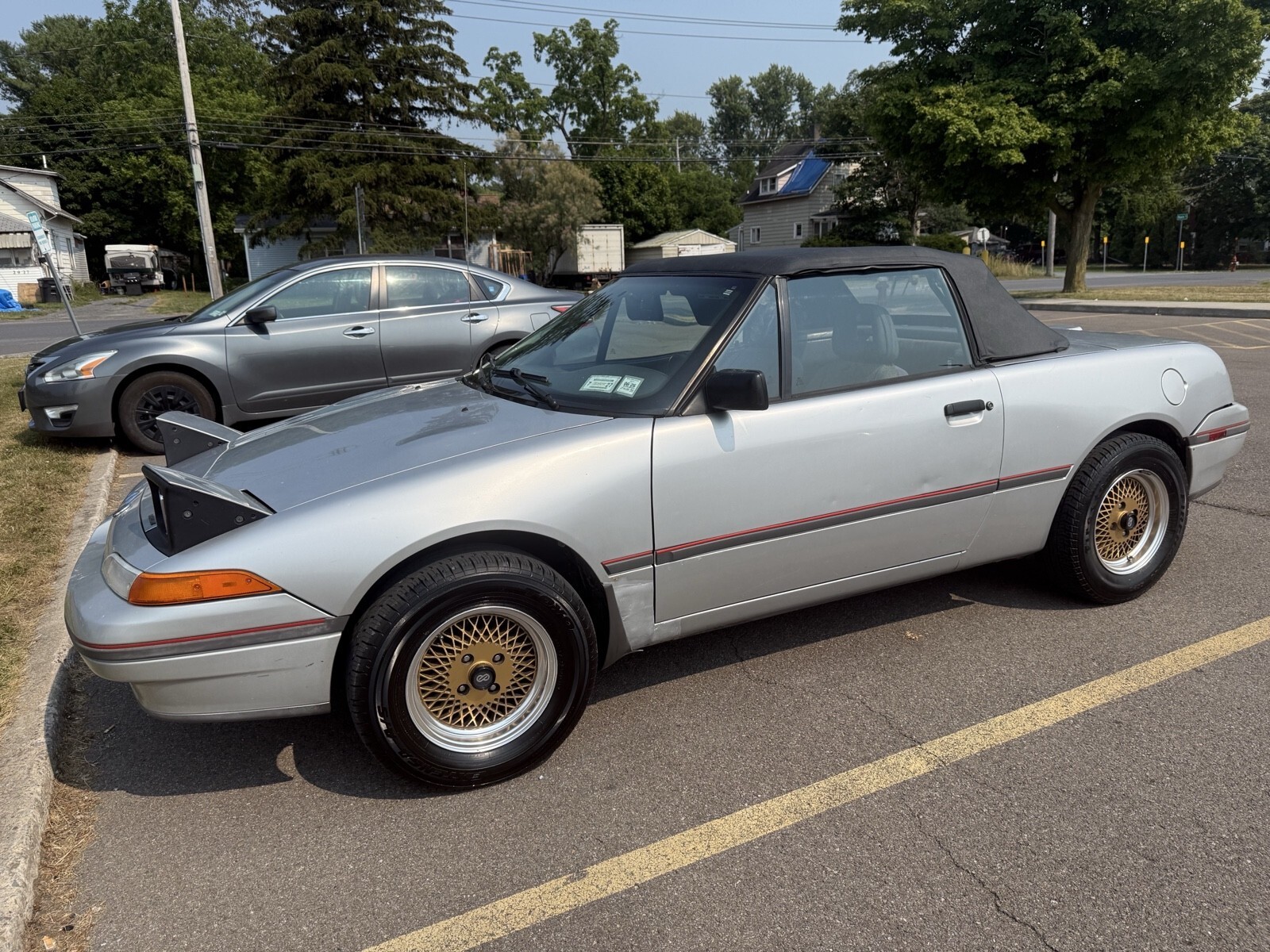 Five speed manual four seater convertible manual top which works fine comes with two sets of wheels. The wheels that are on it and the wheels that I have in storage the wheels on it are Enkei Never seen a winter.