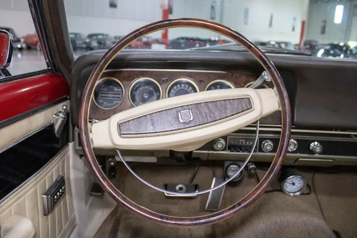 This example is finished in a striking red exterior, paired with a tan vinyl top and a tan interior that perfectly captures the period look. Clean lines, tasteful chrome accents, and the convertible top make it a standout both on the road and at car shows.