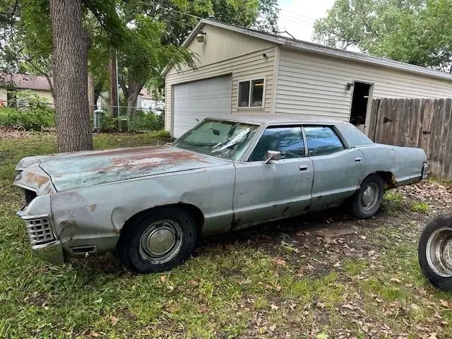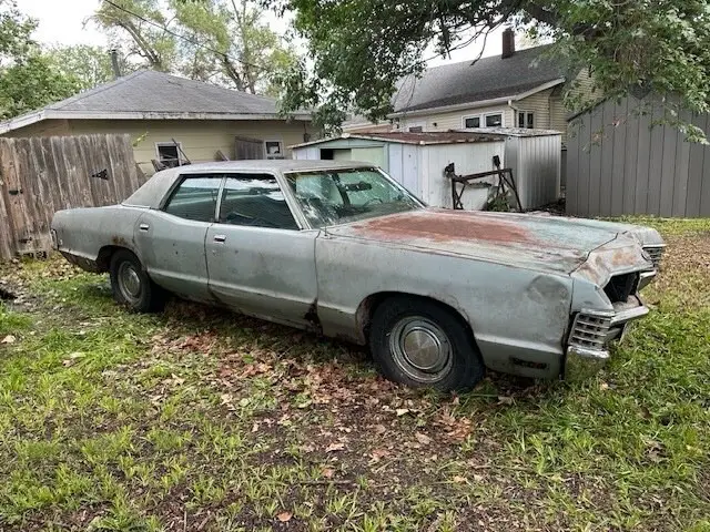 1972 Mercury Monterey, former Nebraska State Patrol vehicle. 163,333 miles. Pillared 4 door hardtop, 429 Police Interceptor engine (engine is stuck), C6 special automatic transmission, power brakes, power steering, rear end axle 300:1 Equa-lock, air conditioning. 4 Door Monterey. 6 passenger. Light Gray Metallic.