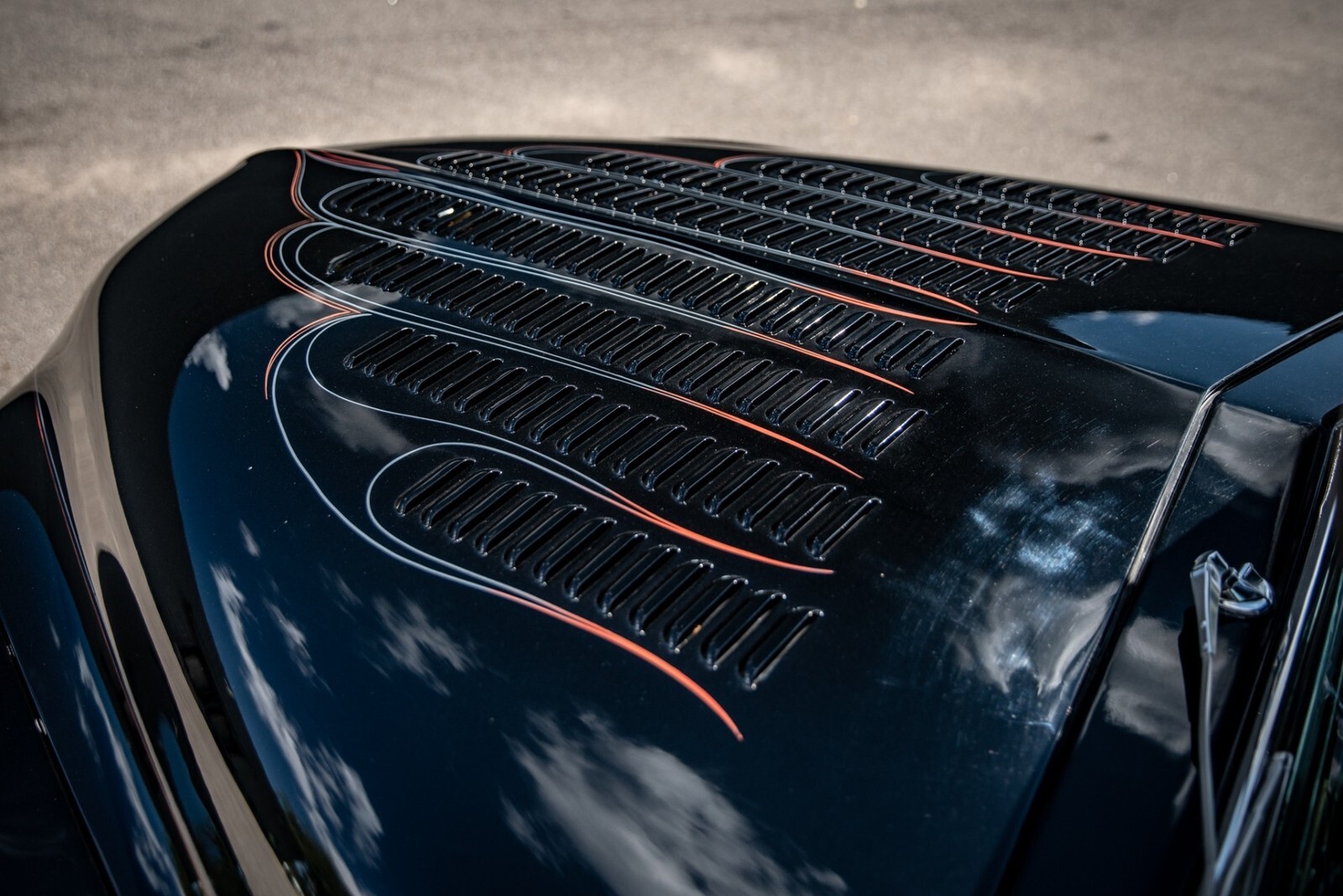 Performance and style continue through the exhaust system, featuring powder-coated Fenton headers and stainless steel Laker pipes. This combination not only delivers a rich, throaty exhaust note but also enhances the car's visual appeal with polished detailing and craftsmanship. The sound is unmistakablepure traditional hot rod music that turns heads and draws crowds wherever it goes.
