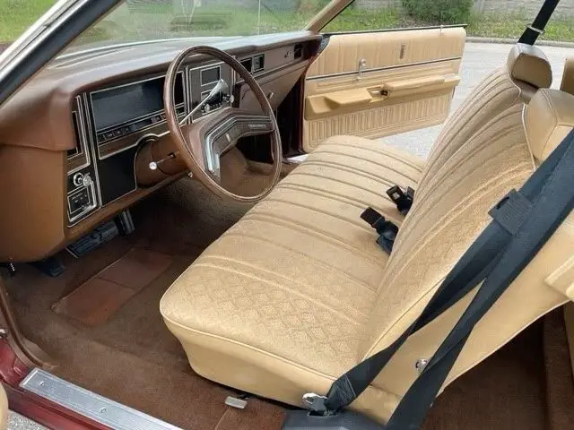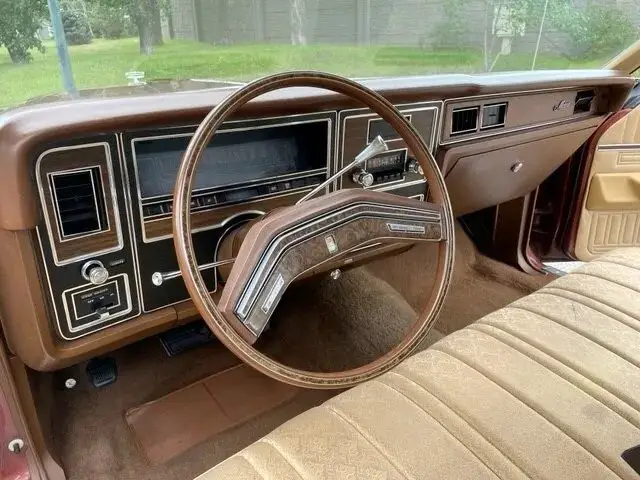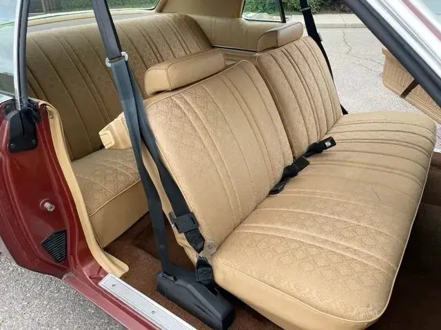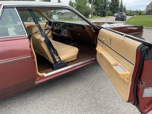 Like many unrestored survivors, this Meteor has a few age-related imperfections: one small paint chip under the emblem on the right front fender, a rub mark on the right threshold, small dents in the stainless trim atop the doors, a mild highway-speed vibration likely caused by flat spots or wheel balance from long storage, and several cracks in the molded plastic interior door panels. These issues do not affect drivability and are typical for an original mid-70s vehicle.