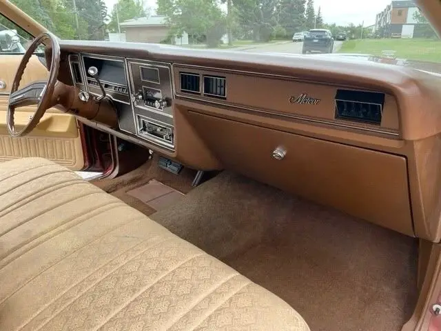 This 1975 Mercury Meteor Rideau 500 presents beautifully following a complete body restoration, rust repair, and repaint in its original Copper Metallic finish. The new white vinyl top and excellent tinted glass further enhance the car's clean, classic appearance. The body is solid, straight, and well preserved, while the interior remains original, tidy, and odor-free, with clean tan seats and carpet.