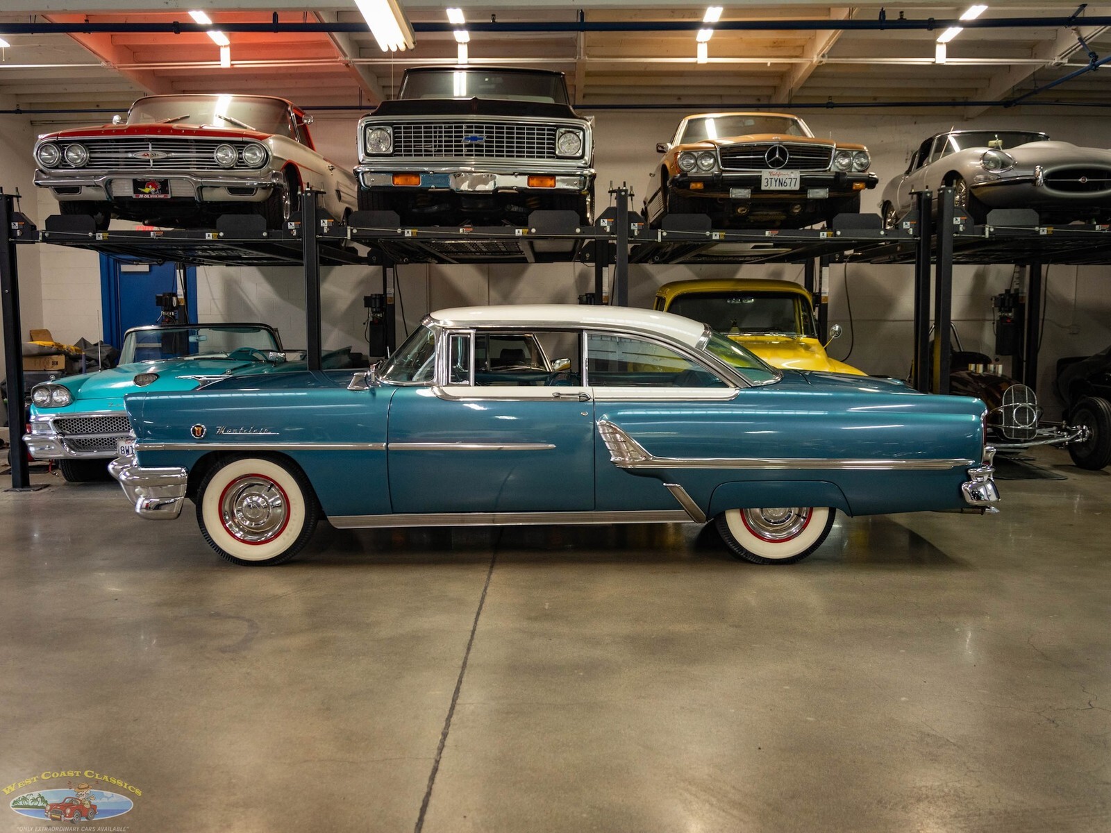 West Coast Classics are proud to present an absolutely exceptional and completely rust free and restored with great attention to detail example of this 1955 Mercury Montclair 2 Door Hardtop with its 292 CI 198HP 'Power Pack' 4 BBL V8 engine matched to the Merc-O-Matic automatic transmission in beautiful and striking 'Flo-Tone' two-tone color combination of 'Blue' with a gorgeous matching interior. The car had factory options including the 292 V8 high performance Power Pack engine, a Merc-O-Matic automatic transmission, heater defroster, power front seat, power windows, road lamps, hubcaps, cloth vinyl upholstery, carpeting, electric clock, horn ring, chrome window surround moldings, full length body side stainless trim, rear fender skirts, rocker panel moldings, heater defroster, signal seeking AM radio.