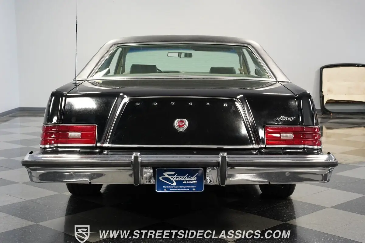 A mere 13,430 actual miles have passed under the wheels of this 1979 Mercury Cougar XR7, making it an exceptionally preserved specimen from the late 70s. The black exterior maintains remarkable quality for a vehicle of this vintage, giving the sleek two-door profile a dignified presence. The vinyl top shows excellent condition, perfectly framing the signature opera windows - a hallmark design feature of the XR7 model. American Racing Authentic Hot Rod Wheels sized at 15 inches provide a custom touch, while the 235/60R15 front and 255/60R15 rear Cooper Cobra Radial G/T tires create a slightly aggressive stance for this classic Mercury.