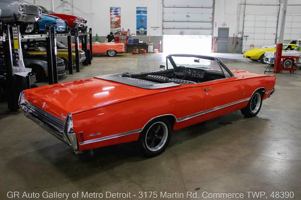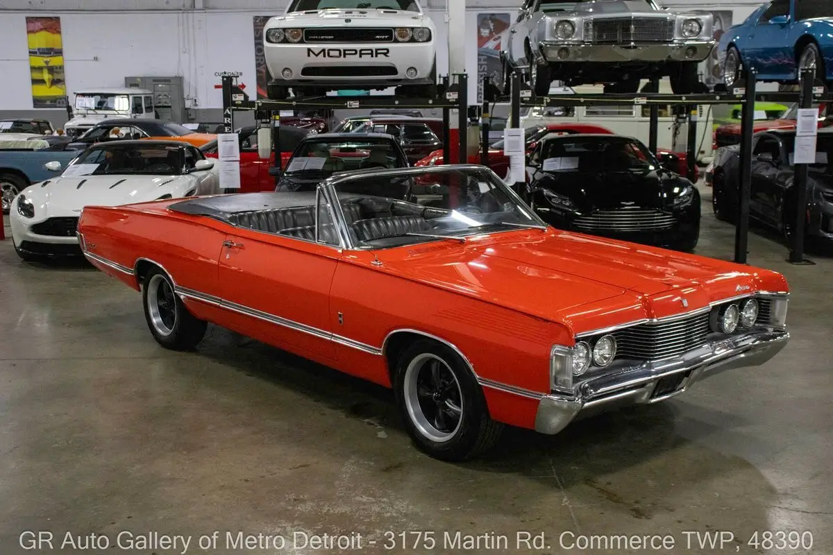 GR Auto Gallery is pleased to present this rare 1968 Mercury Park Lane Convertible for your consideration. Finished in eye-catching Crimson Coral over a Black interior, this Park Lane is 1 of only 7 produced in 1968 with special paint, making it an exceptional find. Powering this full-size cruiser is a 390 cubic inch V8 paired with an automatic transmission. The vehicle has been well cared for with frequent oil changes and several important updates, including