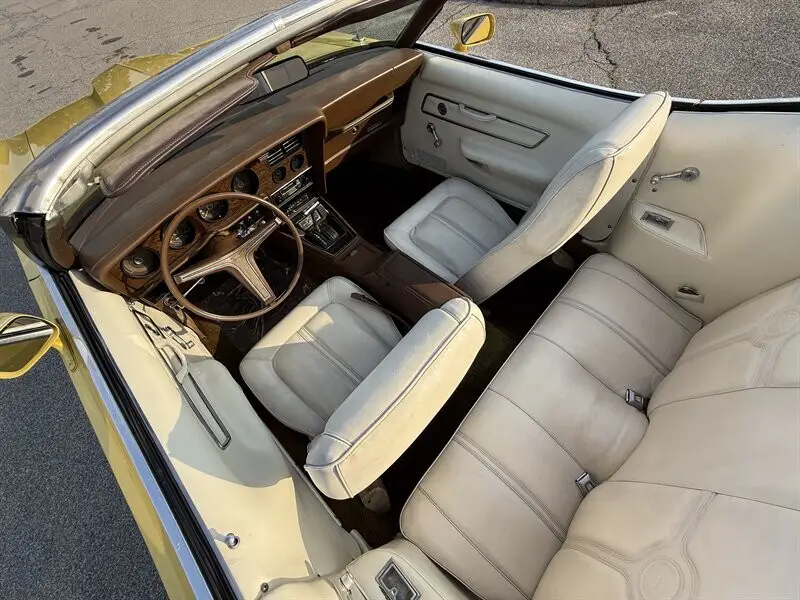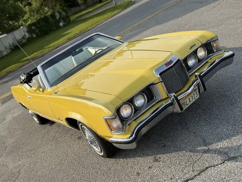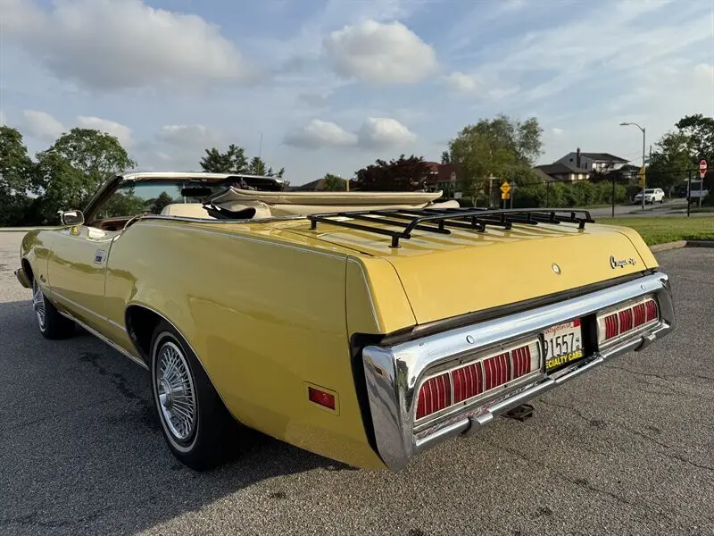 Ford and Mercury often used the same color codes across their lineup, so "Medium Bright Yellow" could also be found on Mustangs and Torinos.This well maintained original Cougar was sold new at Mayberry Lincoln Mercury in North Hollywood, California where it was well cared for by its 2 previous owners. This top-of-the-line XR7 model is equipped with leather bucket seats, AM 8-Track, special interior lighting, deluxe steering wheel, map pockets, full gauges with tachometer and factory air conditioning. The exterior sports a contrasting soft vinyl top, and dual color keyed racing mirrors. The odometer shows just over 52,000 miles on this well maintained and cared for example.