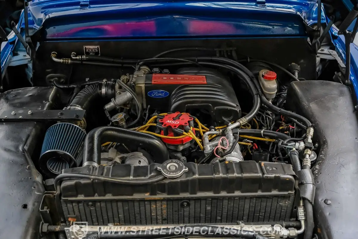 Beneath the hood, the drivetrain, including the 5.0-liter V8 engine, automatic transmission and rear end, is also sourced from the same 1989 Mustang, ensuring a harmonious blend of classic looks and modern muscle. The 5.0 delivers the kind of power and reliability that makes every drive a thrill and the four-speed automatic transmission with console shifter offers smooth, responsive performance. Power disc brakes in the front and power drums in the rear provide confident stopping power, while the Ford 7.5 rear axle and lowered factory-style suspension deliver a stable, enjoyable ride.