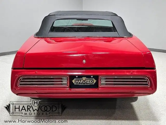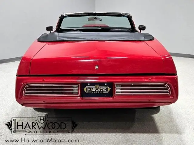 The interior remains largely stock, and from the restoration photos, the work was just as thorough inside as it was outside. The seats were stripped to bare frames and refinished, then covered with fresh foam and correct black vinyl upholstery (a change from the original green). The door panels are in very good condition and we believe they are originals, and the carpets were obviously replaced with correct reproductions. There aren't many big changes aside from the smaller-diameter steering wheel, the upgraded Pioneer AM/FM/CD/Bluetooth head unit, and the controller for the Holley Sniper fuel injection neatly integrated into the console where the clock used to live. The weather seals were all replaced, so this convertible seals up rather well, and it carries what might just be the best-fitting convertible top we've ever seen. No wrinkles, no bagginess, and shockingly, it's easy to fold and latch, so it's not super tight. There's also a new matching black vinyl boot to give it a finished look. In back, the trunk has been custom upholstered to showcase the upgraded audio components, including a pair of big Orion subwoofers and custom amplifiers with LED lighting--pretty cool!