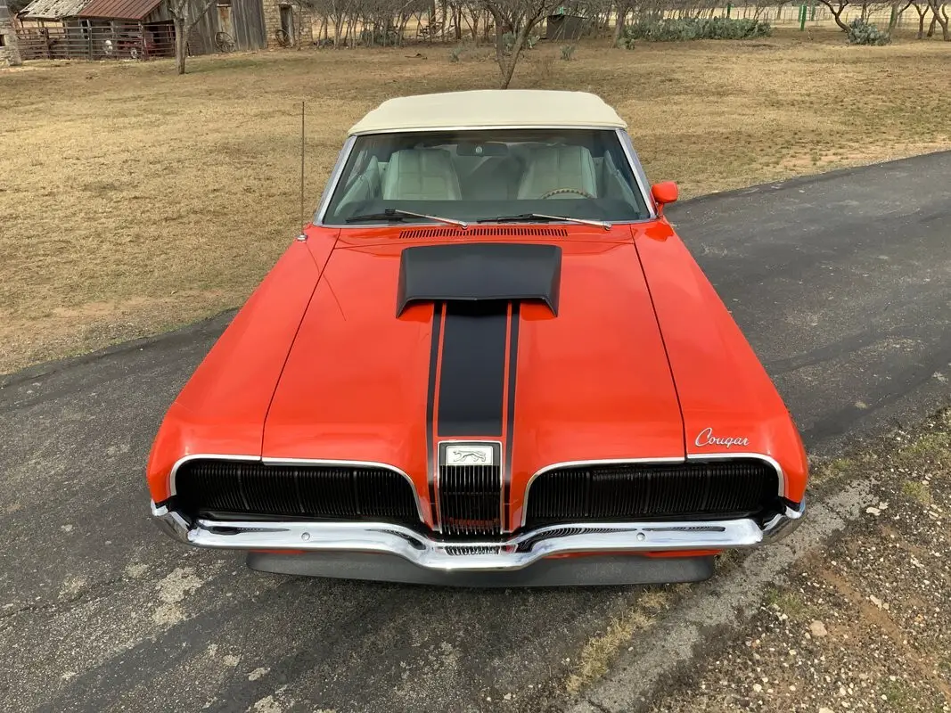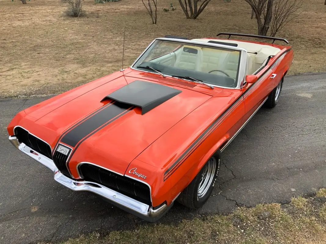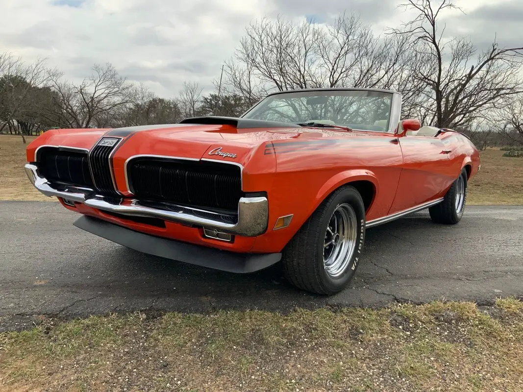 Welcome to Street Dreams as we celebrate our 27th year in the classic and muscle car business. The Mercury Cougar was that division's response to the overwhelming success of the Ford Mustang. As a sister division, Mercury chose to move upmarket from the Mustang with features like a 3" longer wheelbase for a more comfortable ride and the availability of even more options. Generally adored for their styling, Cougars proved to be very popular with women as well as men, securing their place in American car culture. This striking Competition Orange (1) 1970 Mercury Cougar is an excellent example of these stylish felines. Lift the scooped hood and you'll see the smooth 351W V8 that's been fortified with an Edelbrock carburetor and aluminum intake manifold as well as a set of headers. Additional features include power steering, power front disc brakes, power windows, power top, factory air conditioning, automatic transmission, bulletproof Ford 9" rear end with 3.00 gears, console, AM/FM stereo, correct paint and trim codes (1, EA), front and rear spoilers, and B.F.G. Radial T/A's (235/60R15 F, 255/60R15 R) wrapped around classic Magnum 500's. All options except spoilers and wheels were factory installed. You want to talk about fun, try cruising around, top down, on a sunny day. This beauty gets more attention than Lady Godiva! She's also one of only 37 Competition Orange/White Clarion Cougars produced in 1970, according to the included Deluxe Marti Report. One more hard-to-find classic from the Texas Hill Country's premier source for classic cars and the team that can make your dream a reality. Ray-Bans and sunscreen not included. Street Dreams (830-997-1950) is a full service dealership that can assist with worldwide delivery, insurance, and financing options.