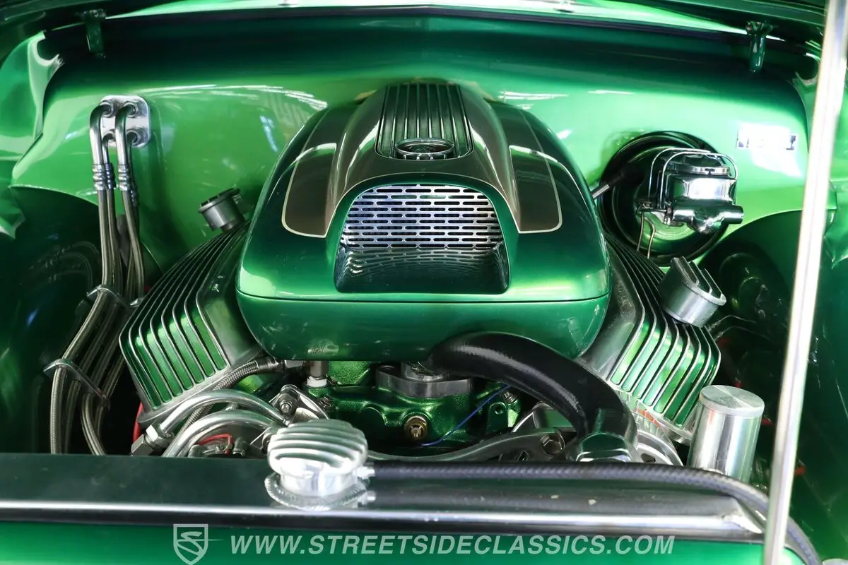 Under the hood sits a potent big block 454 V8 paired with Holley Sniper fuel injection and a TCI three-speed TH400 automatic transmission for strong, usable power. The engine bay is neatly detailed with an aluminum radiator, headers, and a tidy wiring and hose layout. Drivability is enhanced by power steering, power brakes with four-wheel discs, a GM 10-bolt rear end, and a RideTech Ride Pro X air ride suspension that settles the car for cruising or show presentation. Dual exhaust and a painted underside complement the overall build.