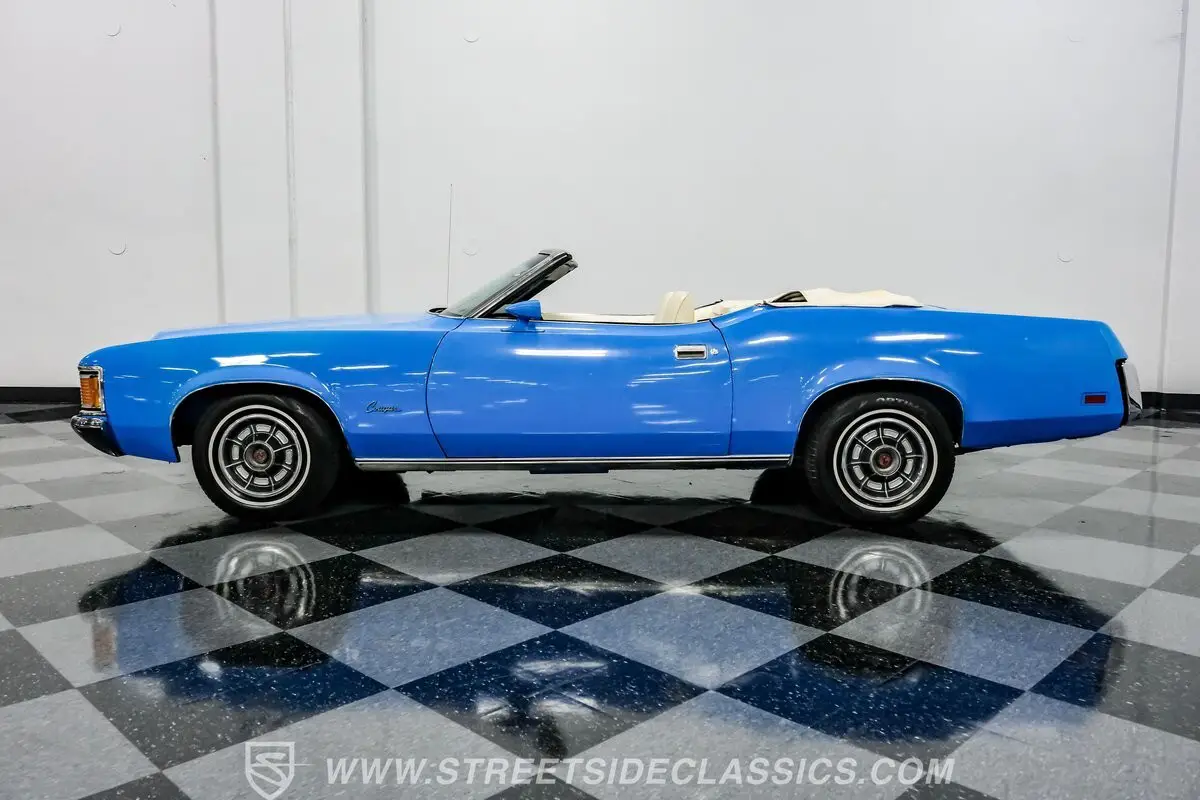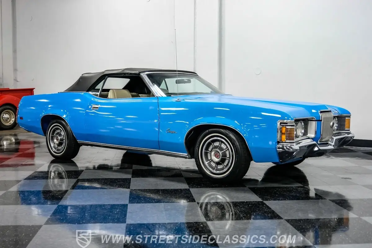 The 1971 Mercury Cougar XR7 Convertible isn't just transportation-it's a ride back in time. With its V8 rumble, open top freedom, and classic muscle car style, it delivers vintage cruising at its best. Finished in Competition Blue with a black soft top, plus chrome bumpers and trim, it's a striking piece of automotive history ready for new adventures.