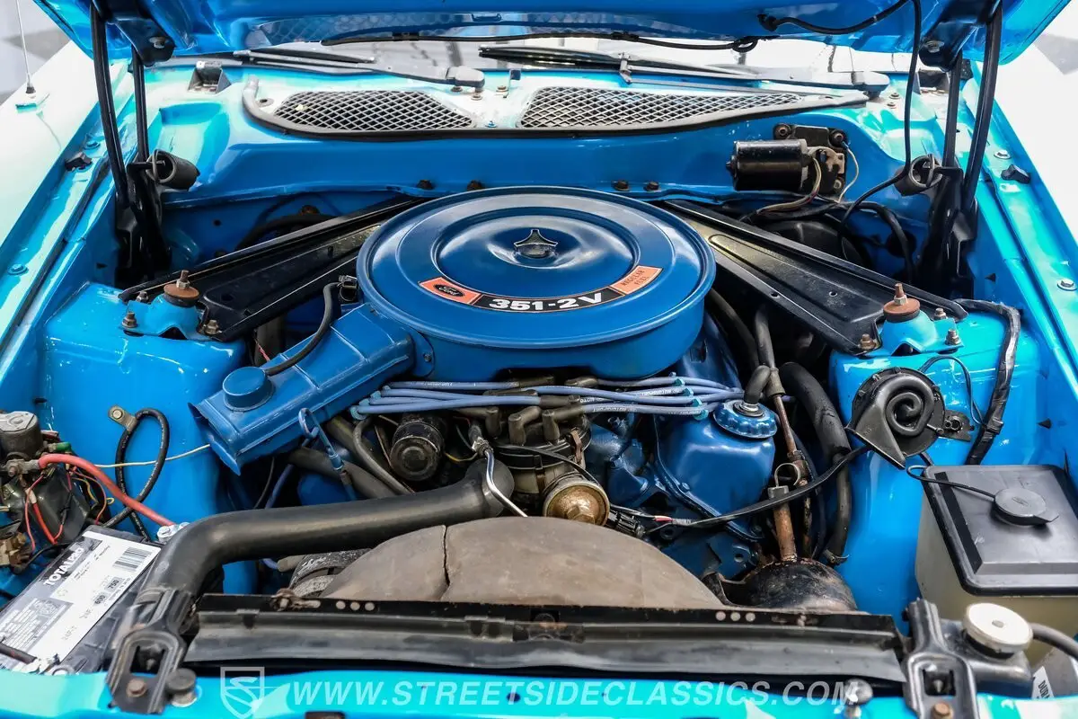 Under the hood, a robust 351 V8 engine delivers smooth power, paired with a 3-speed automatic transmission for effortless cruising. The engine bay retains its factory-style appearance, while the drivetrain provides reliable performance and a satisfying driving experience. Power steering and power brakes with front discs ensure confident handling and stopping power, making this convertible as enjoyable to drive as it is to admire.