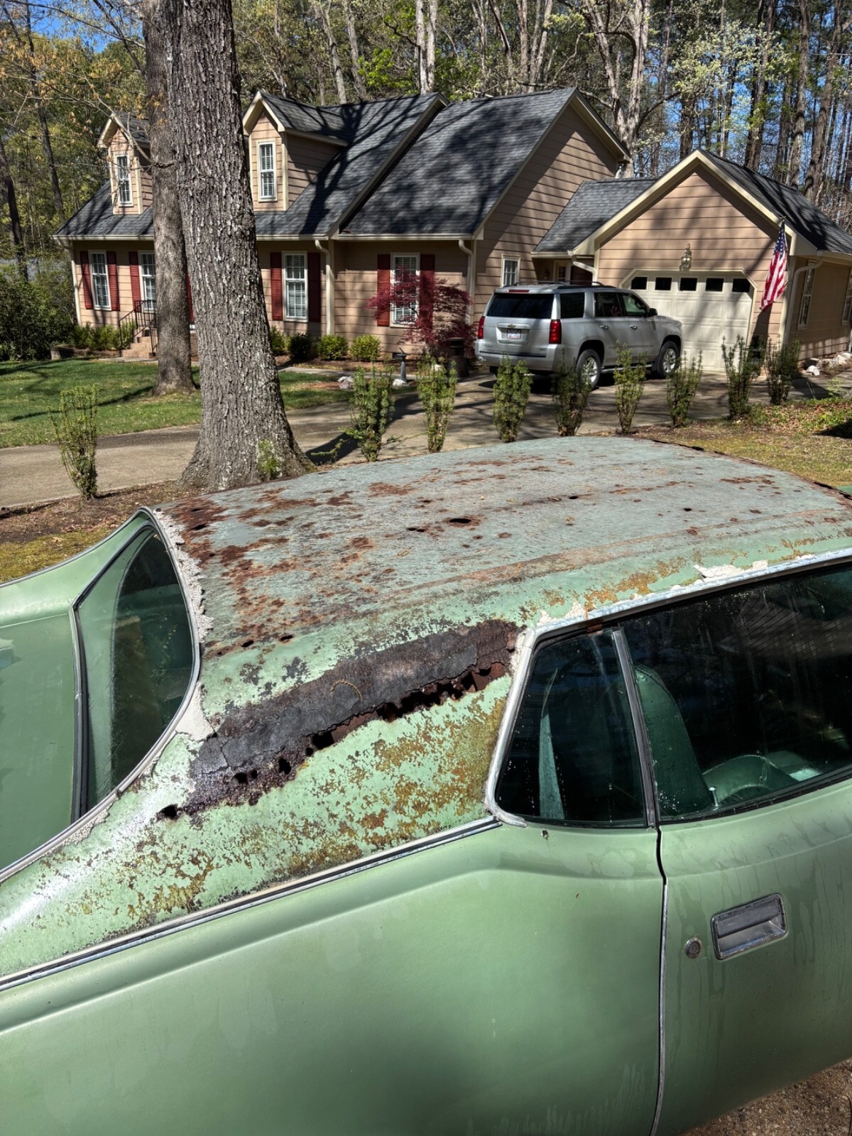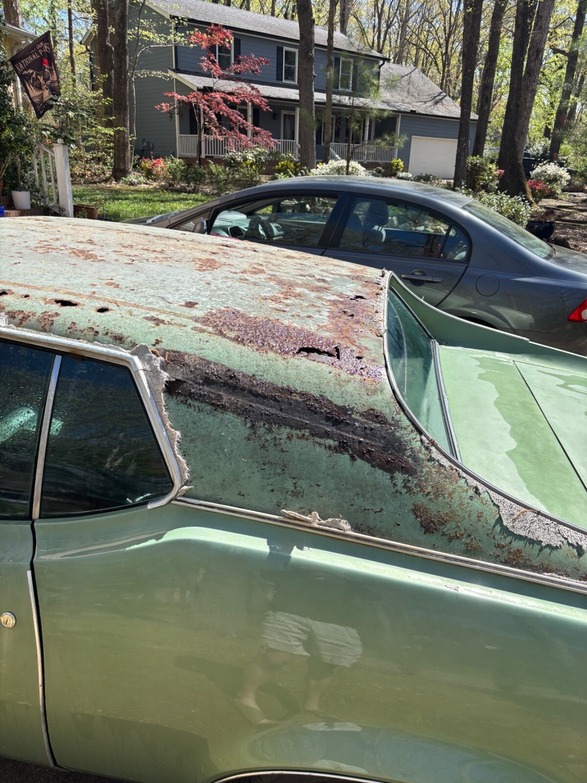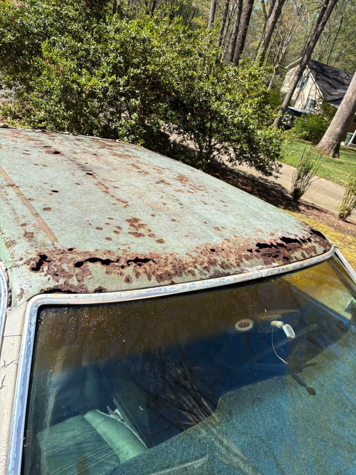 Original vinyl roof has been removed and the area shows rust