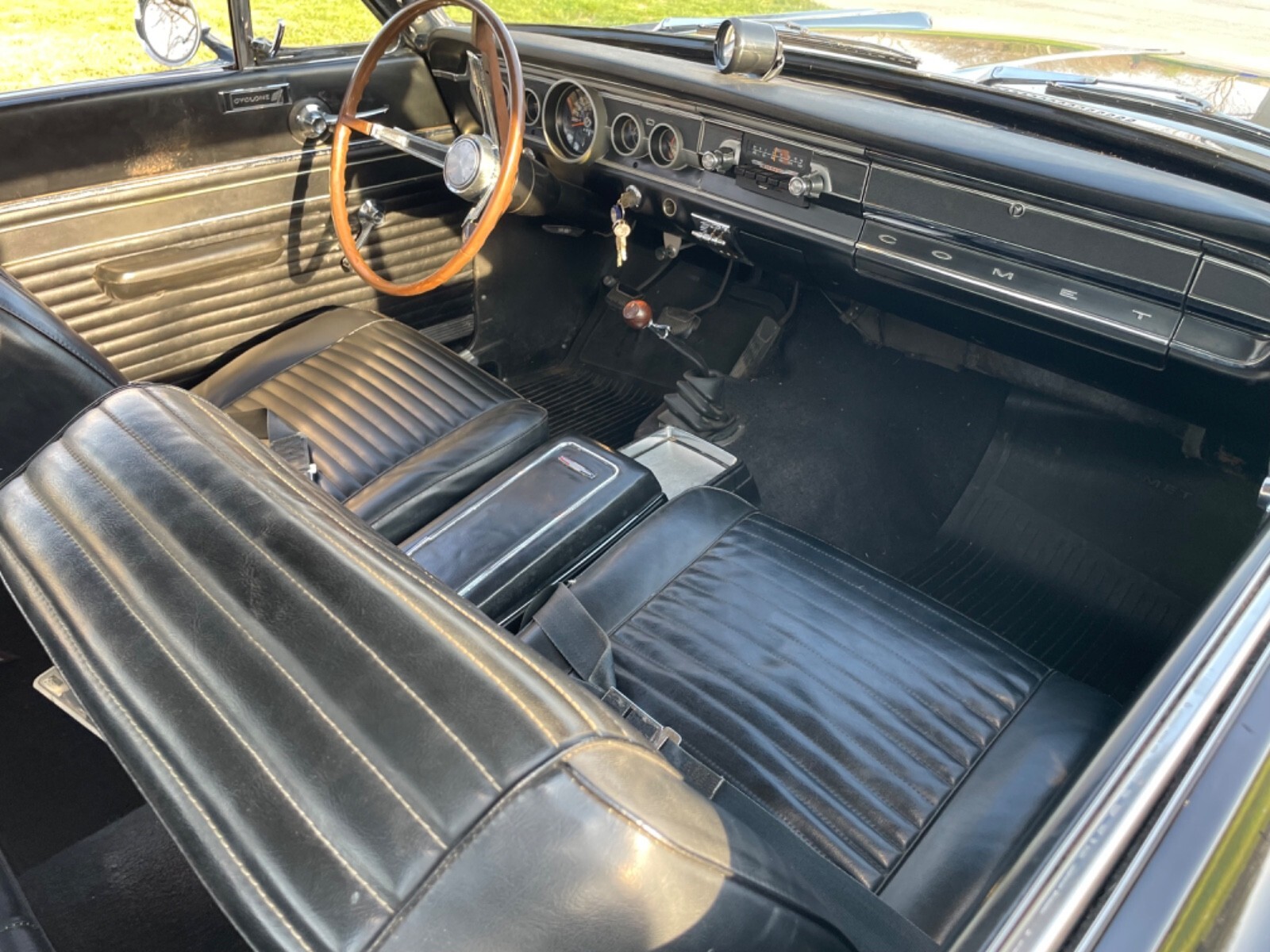1965 Mercury Comet Cyclone. Original survivor 289 v8. 4 speed, 4 barrel. Dad worked at a Mercury dealership his senior year before going to Vietnam in 1965. This was a dream car for him. We are the fourth owners of this car. Black on black 2 dr hardtop. Car is very original and a fun driver. Has the original Mercury keys, comet floor mats, owners manual, and Mercury id cards. Car is in great original shape and was well maintained through its life. Only non original parts I can find are possibly carb(Holley 4 barrel), coil, tachometer on dash, and tires(like new). Always draws attention. Drives well. Solid car through and through. Located in mason Illinois. We are selling some of Dads collection. Can deliver for additional fees if within 150 miles. Feel free to ask questions. This is a rare car to find in this condition with this amount of originality.