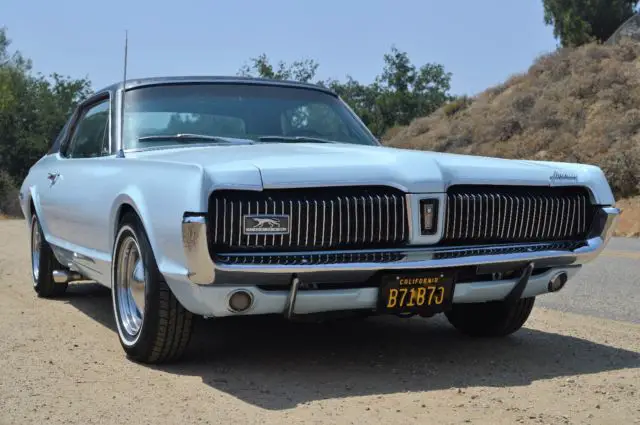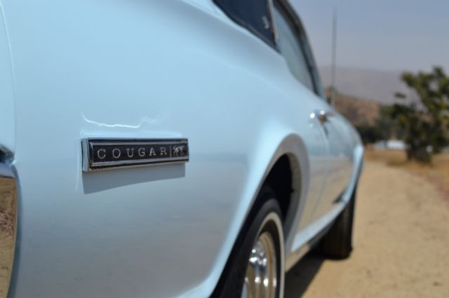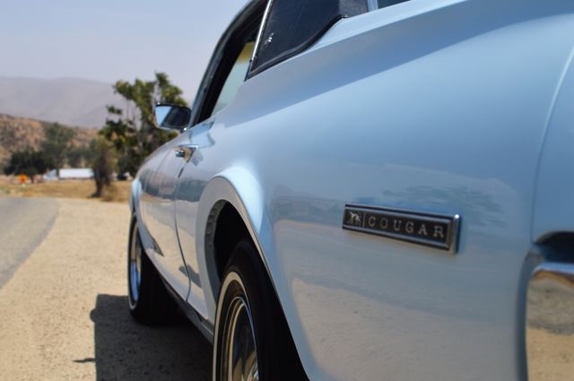 This restored cougar has been beautifully repainted in its original and correct Tiffany Blue. This is a very rare and desirable color combination. This cougar was born and raised in CA and is rust free.