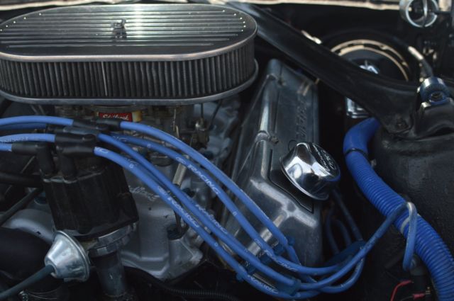 The engine has been upgraded to the powerful 351 Cleveland with an aftermarket performance Edelbrock 4 barrel carb and intake manifold. Paired with a Pertronix Flame-Thrower distributor and coil. Dual side exhaust with Glasspack mufflers. The engine is extremely strong and responsive and sounds absolutely awesome. The transmission shifts smoothly through the gears.