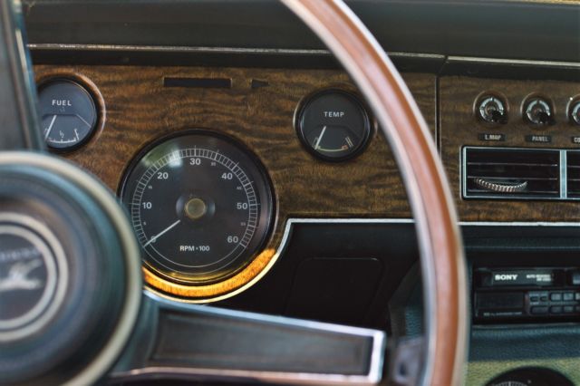 The XR-7 model brought a simulated wood-grained dashboard (that is in great shape) with a full set of black-faced competition instruments and toggle switches, an overhead console, and a T-shaped shifter with a center console.