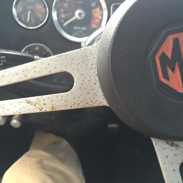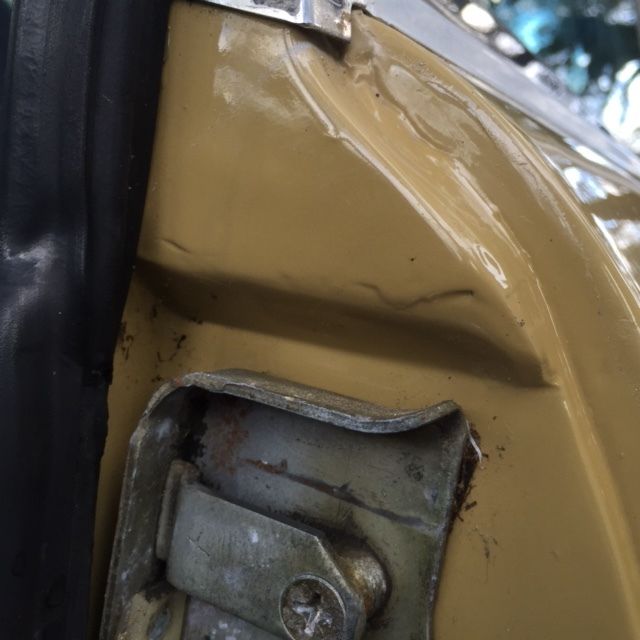 - NO VISIBLE RUST! Pans are solid. Some surface corrosion where master cylinder leaked, but nothing serious. There is a small bubble on the hood lip(see photo)