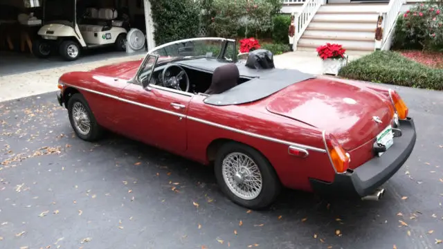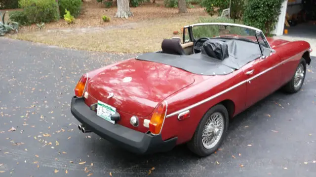 1978 MGB convertible, 1800cc 4 cylinder engine, 4 speed transmission (non-overdirve), wire wheels (including spare) 95,000 miles. Starts and runs fine, needs a tune up. Solid body, a little surface rust passenger side rocker panel – see photos. New PaceSetter exhaust. Comes with new Robbins convertible top (needs to be installed – frame is complete and in place). Full tonneau + ½ tonneau. Paint in fair to good condition – clear coat spotty in some areas; some chips need touch up. Air pump/smog equipment removed. Interior needs work