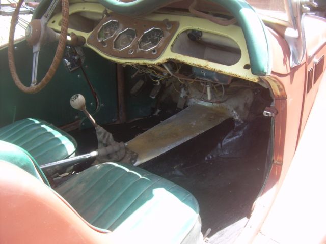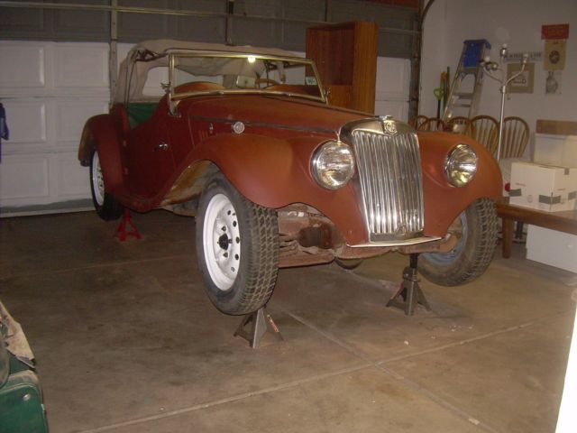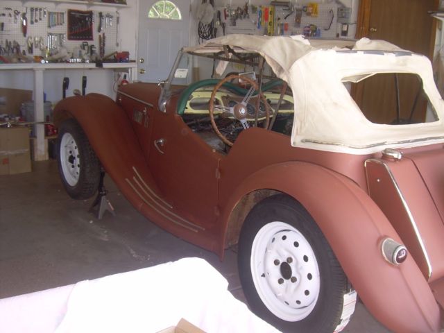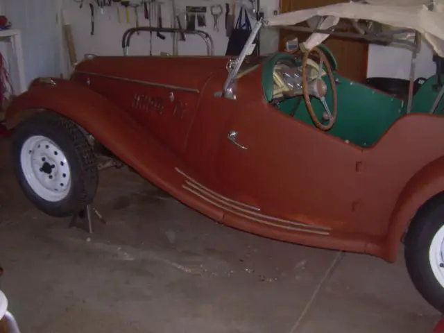 Engine and trans. were replaced in 1972 with a Ford pinto 4-cylinderr and 4-spd.The fellow who owned it got into senile dementia and the car had to be left in the garage for almost 6 years. He passed away and his widow had a local (Texas) mg-car-club-guy prep it and sell it to me.I put marvel-mystery oil in cylinders and let it sit a week, carefully turned over by hand.and then jumped the solonoid with the battery and it turned over nicely.Replaced the plugs and tried to start it, no fuel coming from the tank. hooked it up to a can of gas and it fired and idled nicely, revved it up a bit and the timing belt snapped. So did my patience.