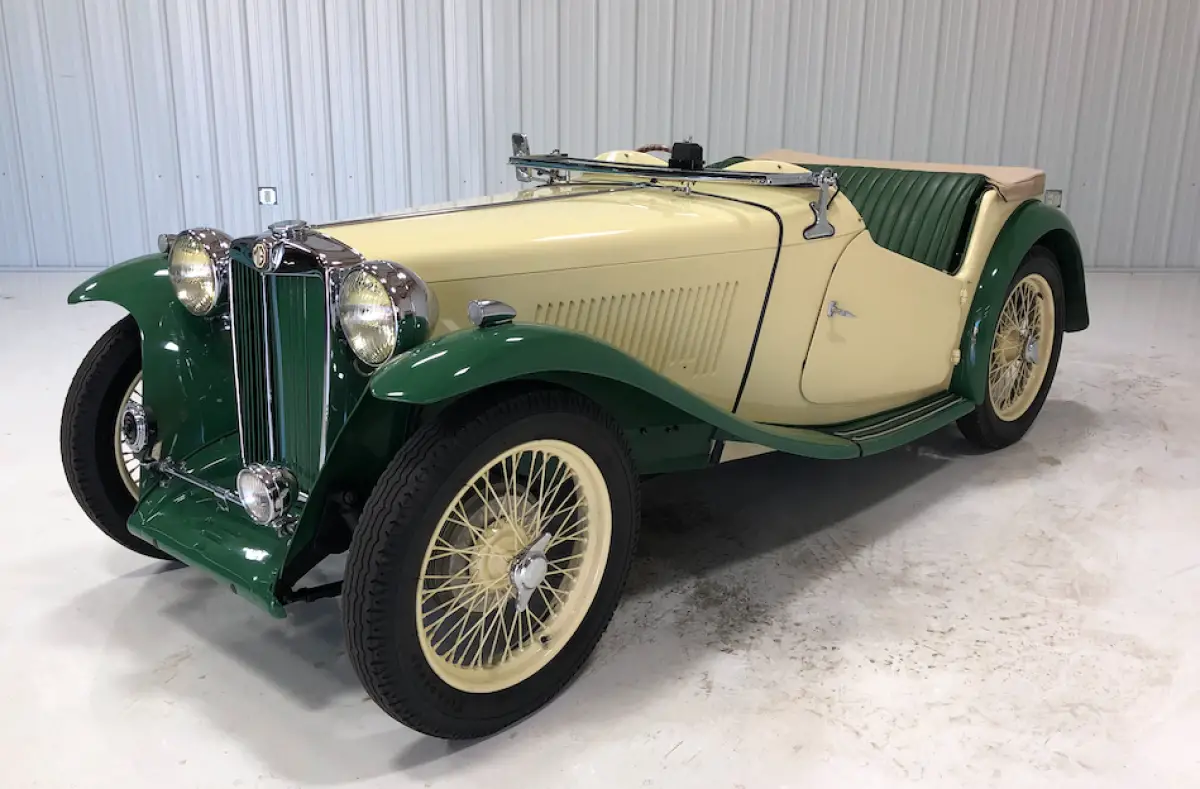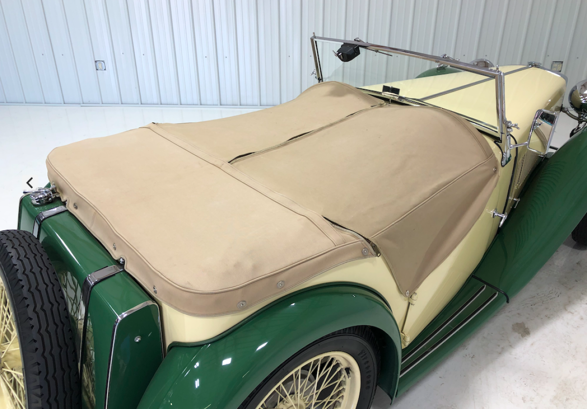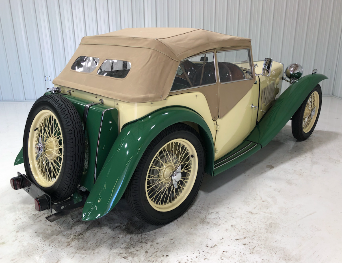 1947 MG TC. Home Market car benefiting from larger headlights, no bumpers and lack of tail lights. 1.3L four-cylinder motor with dual sidedraft SU carburetors. Four-speed manual transmission and 5.125 gearing. Wheat with Green exterior with tan folding cloth top/side curtains and green leather interior. 19-inch wire wheels.Original tools, jack and hand crank. Documentation includes a binder of restoration photos, receipts, parts and restoration guides. The 1947 MG TC is responsible for launching America's sports car craze. U.S. Service men brought them back to our shores by the dozens. Finished in whet with green fenders, the paint and trim are in excellent condition. The correct Fabric top and side curtains are in excellent condition. All steel bodywork is straight and solid, its The engine bay is clean and tidy. The car does benefit from the installation of a period correct performance tune. High Compression Pistons, Balanced Crankshaft, Performance valve grind, Exhaust header. The4 speed non syncro first gear transmission has been restored and is a joy to shift.The front includes the signature MG radiator grill, badge bar mounted foglight and horn. The suicide doors are straight and true and do not drop at all when open. The latches operate as they should. The 19-inch, wheat painted wire wheels with knock off spinner center caps. The original steering system along with rigid axles and semi-elliptic leaf springs have been restored. Braking system includes Lockheed hydraulic four-wheel aluminum finned drum brakes. The green leather flat bench seat looks like new. Black carpets and floor mats are like new.. Four-spoke banjo steering wheel sets off the period look. The wood dash, gauges and switch gear have been restored. These cars never cease to amaze. A TC can idle around town all day and run like a rabbit on twisty roads. No car delivers more smiles per mile The car came from the family of famous pikes peak auto racer Jeff Zwart, it was his father Bob’s personal car and I believe they worked on it together. I still have a lot of the documentation such as paint codes and info on the receipt for the past engine build by Mike Goodman in 2003. There was over $8000 on the receipt in 2003 money so it is built nicely and quite powerful. This is one of the better driving TC’s out there, it will be a very nice addition to someone’s collection. This was what I knew about the car when I listed it several years back. • Past owner Bob Zwart had the car from 1981 to 2009 (Bought from California) • Previously owned by an airline pilot who imported it from England • This was the last MG rebuilt and restored by Mike Goodman (was in Van Nuys) before closing his shop around 2003 ish • Engine sized out to 1500cc with steel liners, modified cam, Carrello rods and pistons, with a new Phoenix crankshaft, 1 1/2? S. U. Carburetors with two fuel pumps. • Balanced engine • Modified water pump to higher flow • Period race header • Tompkins steering kit • 5 new Coker Firestone tires with Michelin tubes (around 2010) • New rear springs • Transmission rebuilt with new bearings and G. M. engine block interface seal. • Alfin aluminum drums • New Optima battery • Grunau real axle shafts • New real pinion seal CAP, bevel pinion housing (Uses lip type seal) • New Brass Fuel Pump • Nice Green Leather upholstery and Tan Stayfast convertible top/ and tonneau cover. More photos are available. Please ask.