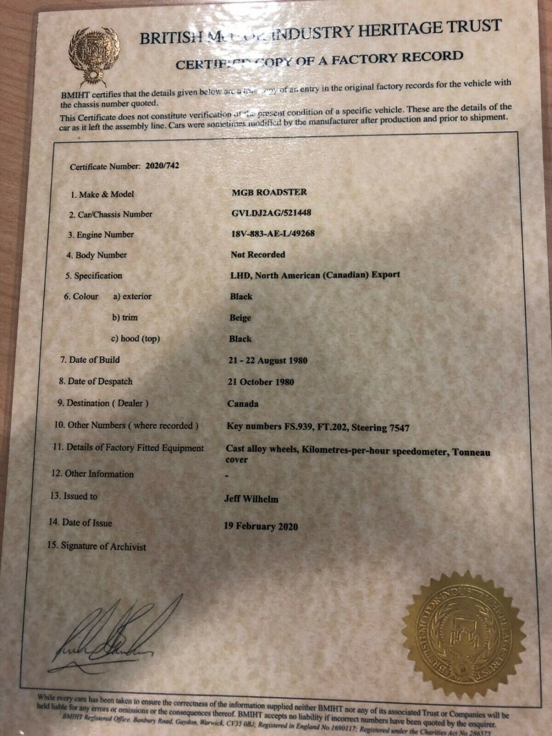 Like new 1981 MG MGB Mark IV with only 19,400 Kilometers(less than 12,000 miles)