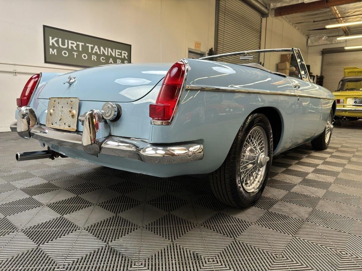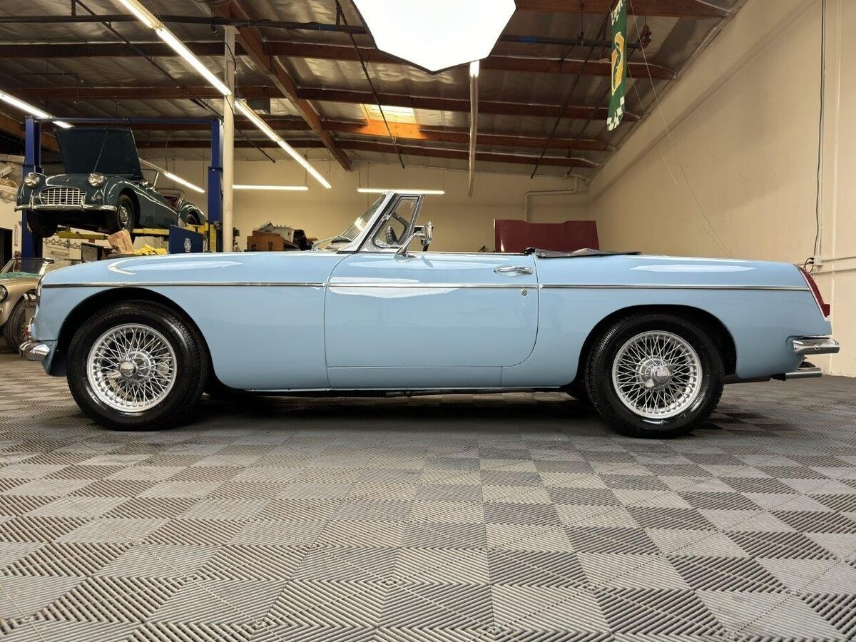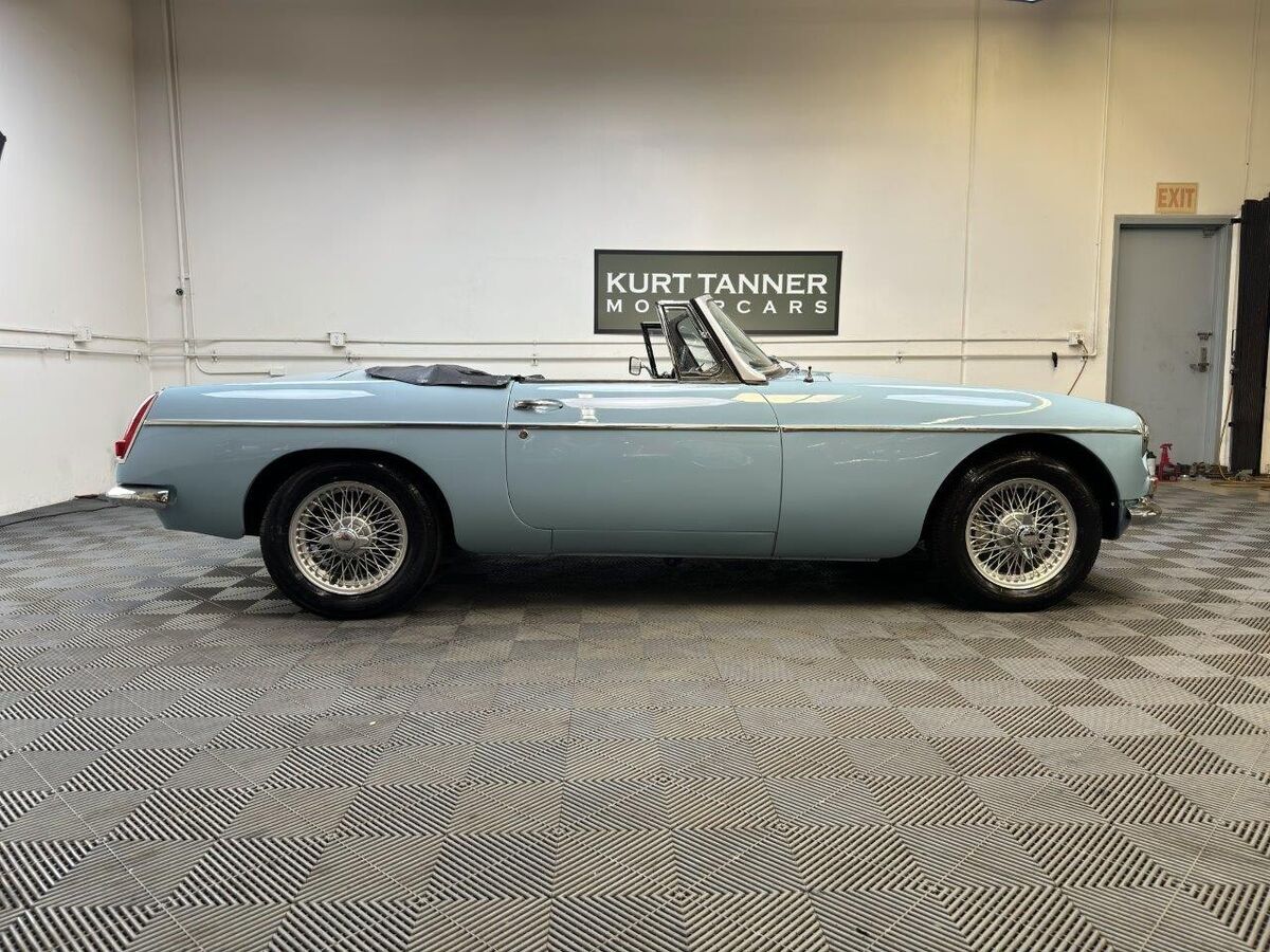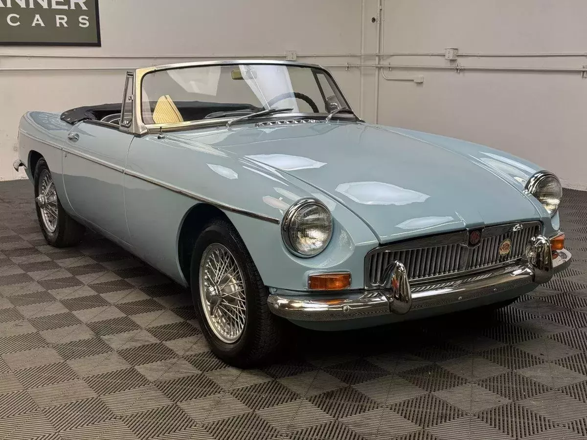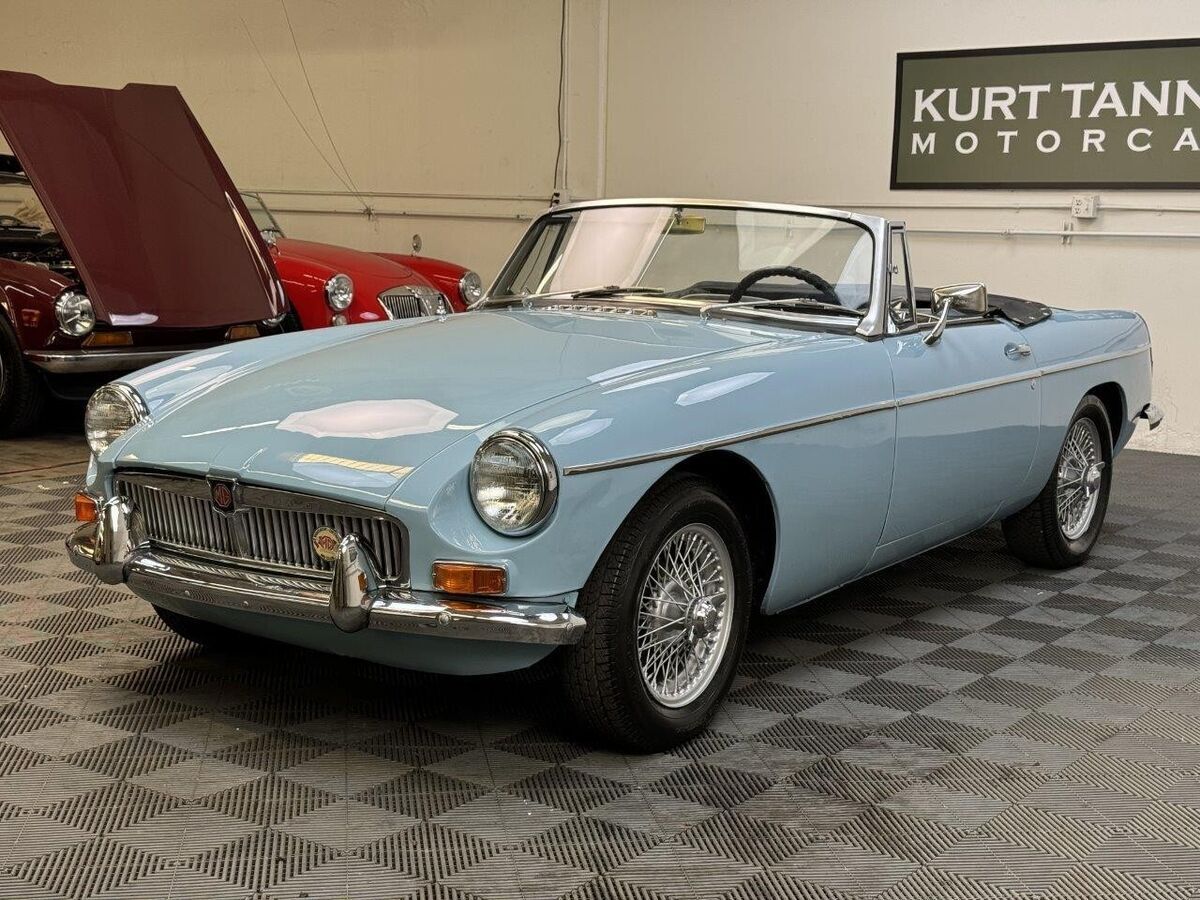 -Recently acquired from it’s older British Car enthusiast owner is this wonderful early MGB in lovely colors with Overdrive.-Believed to be sourced from Arizona, this car was extensively restored both cosmetically and mechanically.-Improvements include beautiful newer glossy paintwork in it’s original and crisp Iris Blue, very good chromework and glass throughout, renewed interior trim including newer leather seats, newer vinyl panel kit, cut pile carpet set, arm bars, black cloth soft top, restored dashboard, modern radio fitted.-PLEASE SEE WALK AROUND VIDEO.-Correct and rebuilt early “18 GA” engine, rebuilt carb set, hoses, upgraded alternator conversion. Nicely detailed engine compartment. Restored painted wire wheel set with newer tires fitted, new knock offs. Clean underside. Good shifting gearbox with working overdrive unit. DRIVING VIDEO COMING SOON.-Overall, a beautifully presented early pull door handle MGB MK1 in refreshing colors. This car has been nicely restored and is ready to enjoy.