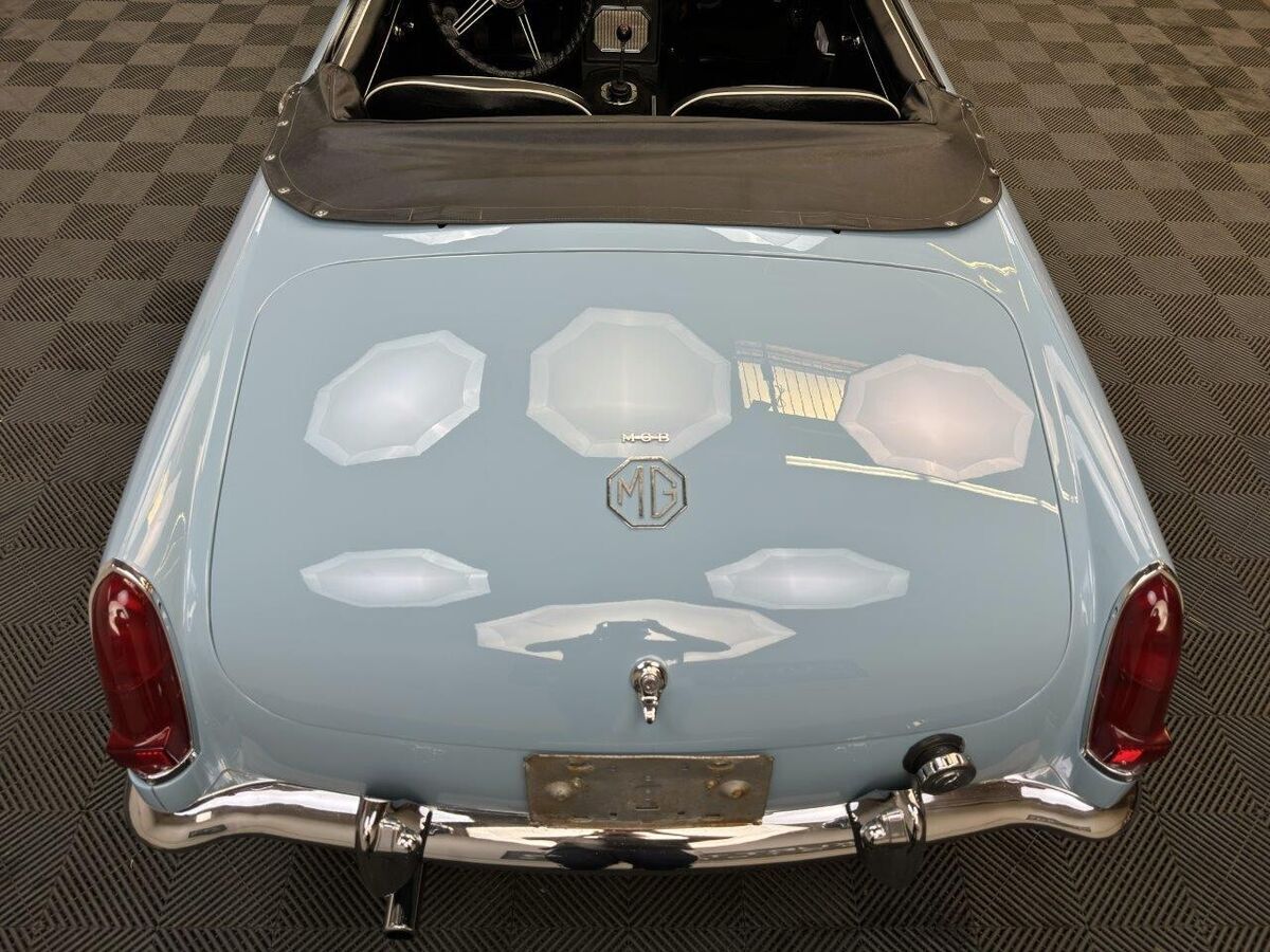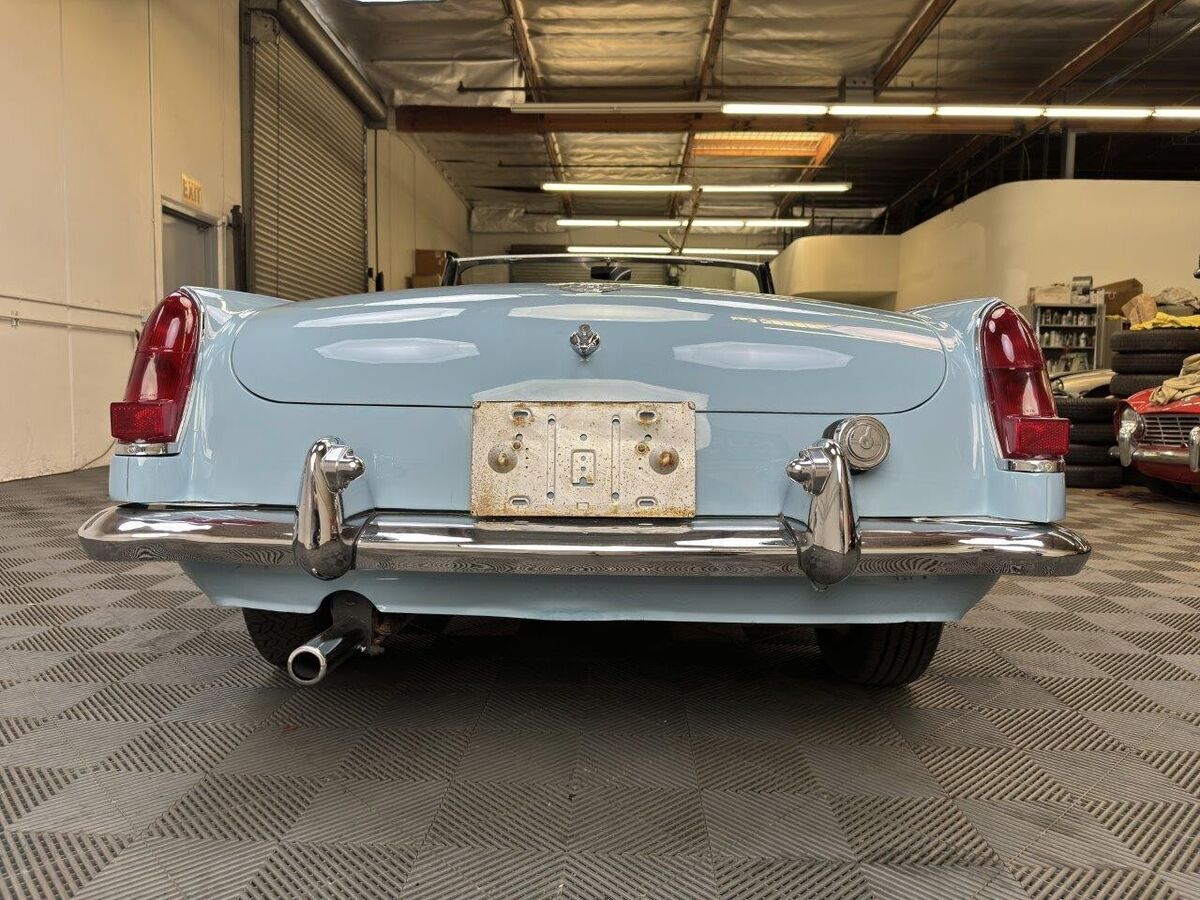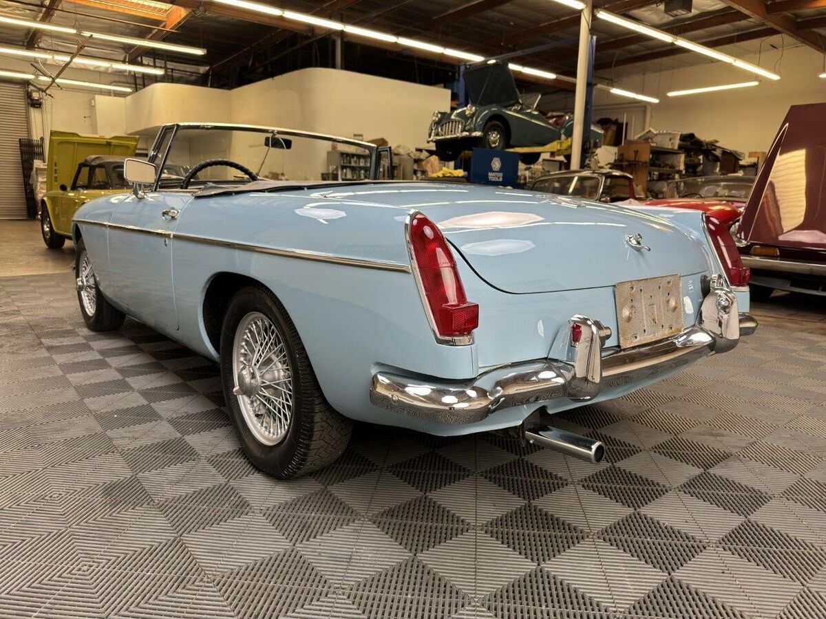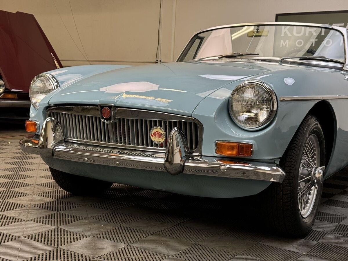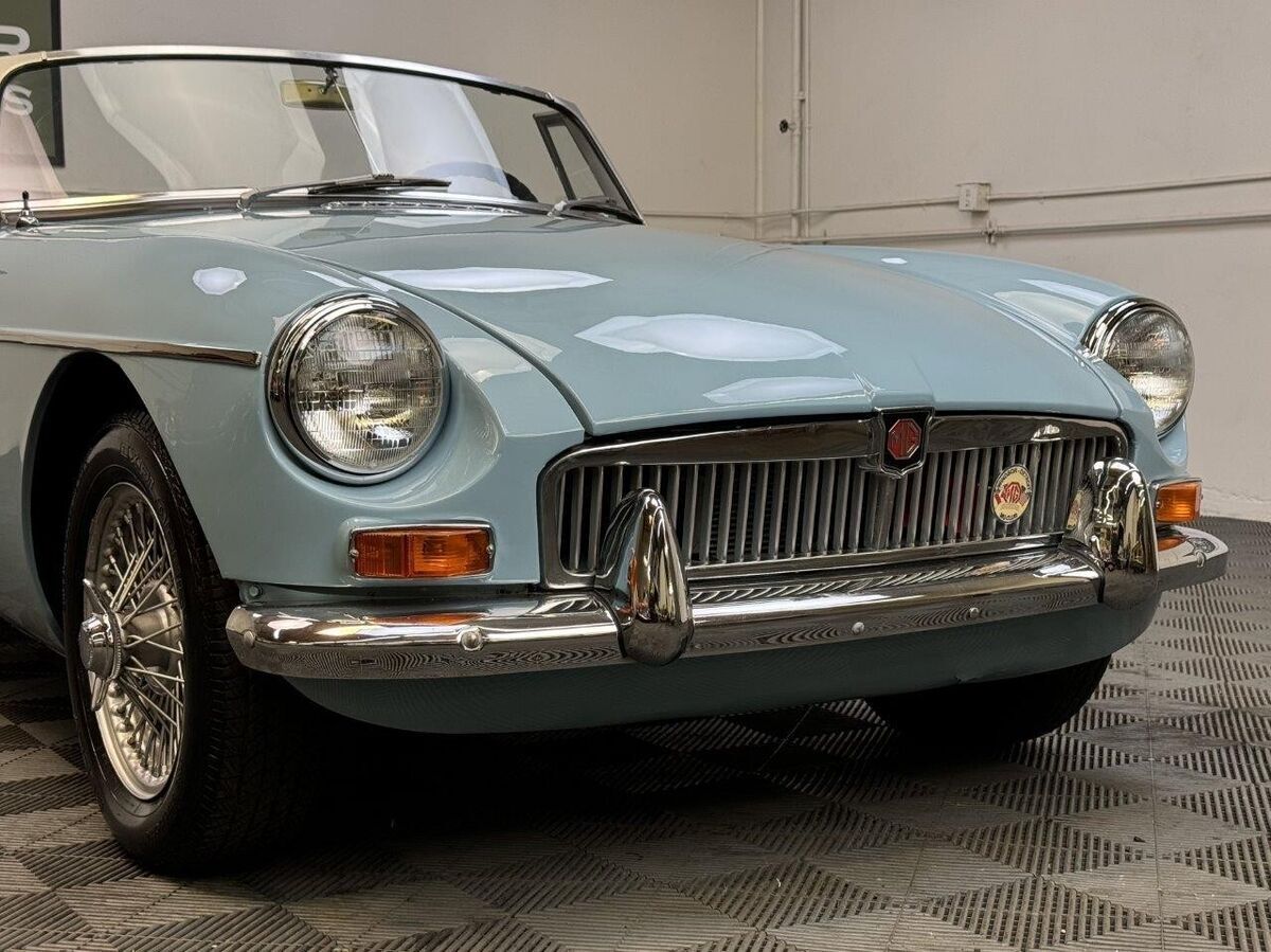 -Recently acquired from it’s older British Car enthusiast owner is this wonderful early MGB in lovely colors with Overdrive.-Believed to be sourced from Arizona, this car was extensively restored both cosmetically and mechanically.-Improvements include beautiful newer glossy paintwork in it’s original and crisp Iris Blue, very good chromework and glass throughout, renewed interior trim including newer leather seats, newer vinyl panel kit, cut pile carpet set, arm bars, black cloth soft top, restored dashboard, modern radio fitted.-PLEASE SEE WALK AROUND VIDEO.-Correct and rebuilt early “18 GA” engine, rebuilt carb set, hoses, upgraded alternator conversion. Nicely detailed engine compartment. Restored painted wire wheel set with newer tires fitted, new knock offs. Clean underside. Good shifting gearbox with working overdrive unit. DRIVING VIDEO COMING SOON.-Overall, a beautifully presented early pull door handle MGB MK1 in refreshing colors. This car has been nicely restored and is ready to enjoy.