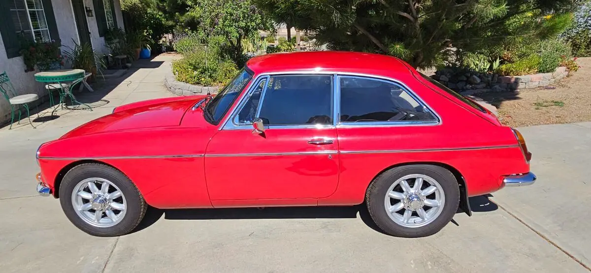 Helping my dad sell his 1967 MGB GT. He has owned it for approximately 26 years. We did a cosmetic restoration on it 25 years ago. It has been garaged ever since.Some of the work done back then incudes:Full respray in original red, new upholstery in black leather with red piping, carpet replaced, 5 new center lock mini lite type wheels including spare (15"). Grill was replaced and lots of trim too. Leather wrapped original style steering wheel. Suspension rebuilt.Over the years many improvements have been made:MOSS MOTORS Supercharger with boost gauge.Early 3 synchro overdrive transmission.Remote brake boosterExtended distance fuel tank.New bottom end bearings less than 1000 miles agoAluminum radiator, new cooler and hoses, recent new water pump.New steering rackHigh Torque starterElectronic ignitionTires were replaced in 2023 with proper Michelin XZX 165SR15The only rust is the lower drivers side fender down at the bottom has developed several rust bubbles (see pics).Front and rear window trim was never reinstalled but is included.Lots of under carriage pictures.Very solid California car its whole life. Runs excellent. Not a show car but a proper respectable driver that still shines!If you wish to see the car please do so before bidding. I am available 7 days a week as I work at home. Please ask any questions you may have, I usually will get back to you within a couple hours at most.Car is sold AS-IS with NO warranty given or implied.Buyer is to pay for car in full before release of title or vehicle. Cash preferred or certified bank transfer if out of state. $500 deposit required.Buyer is responsible for all transportation of vehicle and the costs. I am here to assist in any way and have had many carriers pick up cars here before.