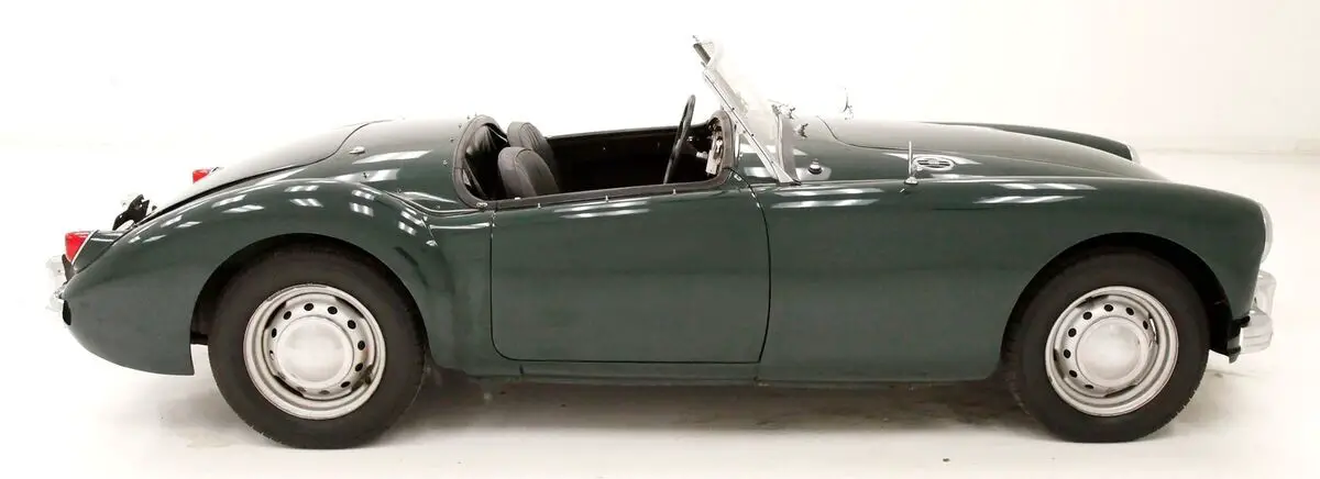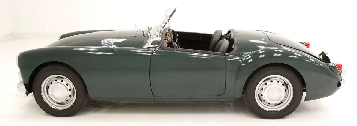 The MGA was a big step forward for the British automaker and somewhat shocking to MG fans around the globe. Our example, the second to last year for the MGA 1500, continued to stun crowds with its persuasive yet delicate flowing lines all bathed in a nicely applied color change application of British Racing Green that is showing well to this day with a few stone chips, scuffs, and scrapes. Starting up front with the raked back waterfall style grille which melts its way into the rounded peak fenders with their chrome bezel headlights we are in late 50's English bliss. Just below this steel and chrome artwork is a clean bumper with added bumperettes. Moving down the sides, a swooping body line melts into the highly arched rear fenders creating a soft Vee shape that keeps eyes drawn and hearts pounding. These sides, devoid of all chrome and trimmings save for the front quarter top venting, achieve artistic perfection with the sculpted lines as they frame the restored gray drilled wheels and blackwall rubber in 15-inch format. A black vinyl top with clear plastic windows and additional side curtains are present and accounted for in case you hit a spot of inclement weather. We do note areas of tearing in the top, but they are slight and do not require a full top replacement at this point. On the back is the rear curved bumper stretching from fender to fender with its near perfect bumperettes, oval tail lights, and chrome MG badge gracing the trunk lid.