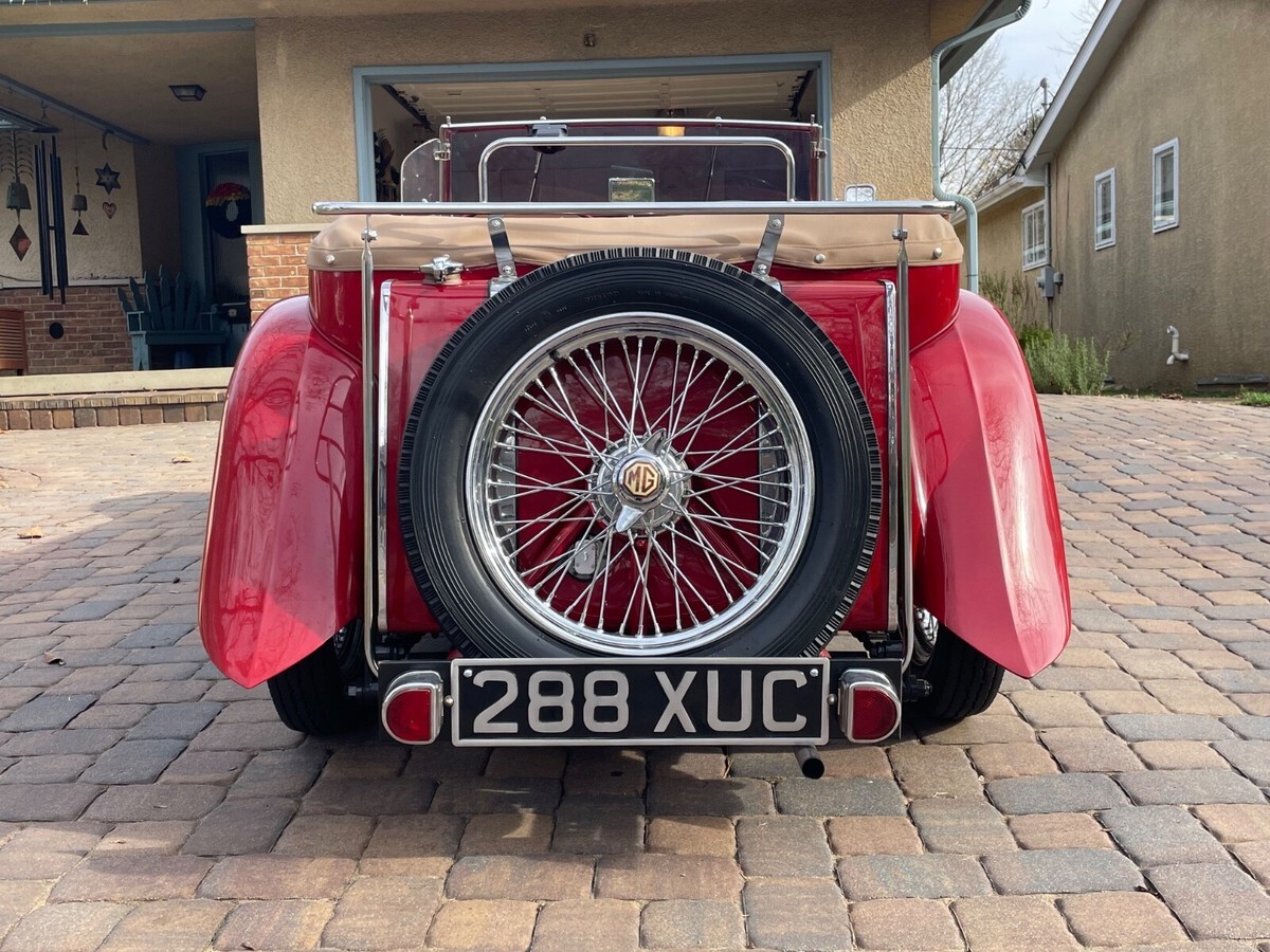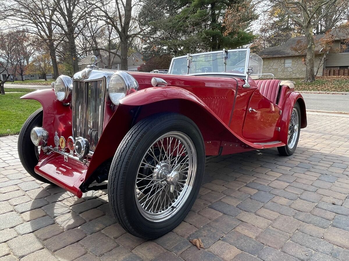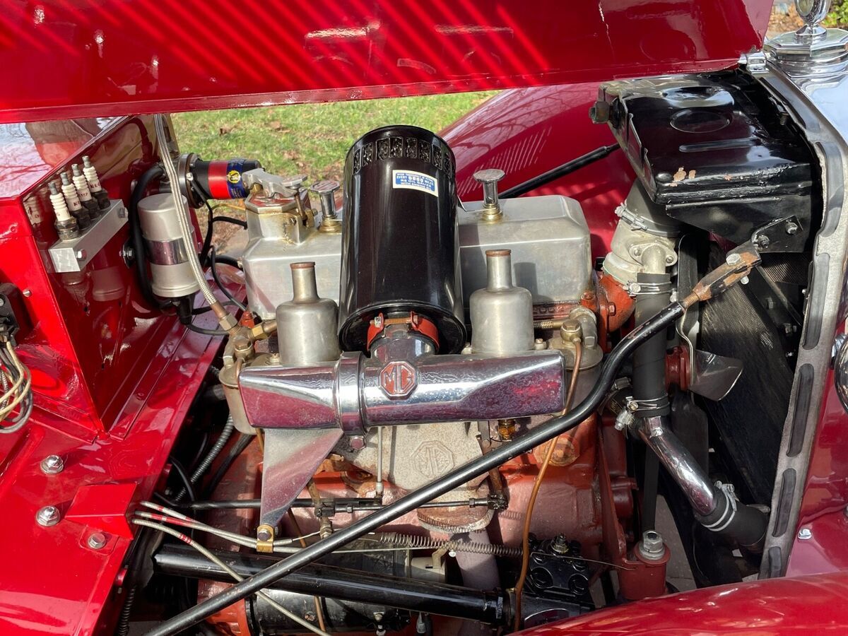 1947 MG TC - Beautifully restored and beautifully kept since then, high quality throughout! Runs & drives great! 1250 CC MG XPAG engine - matching numbers - dual SU carburetors, with some nice upgrades - oil filter, and generator, complete new wiring harness, new walnut dashboard with LED dash lights & working instruments!The Red paint is excellent, the interior and the chrome is excellent! It has accessory luggage rack, and comes with the adapter for installing a dual spare tire (not installed) The seats are beautifully finished in red leather, the undercarriage is clean, the chrome wire wheels are brilliant! The tires are new with new tubes. This car shows the quality of the restoration, the overall impression is sparkling! A wonderful car that is exciting and fun to drive! Clean Ohio title, ready to enjoy now!