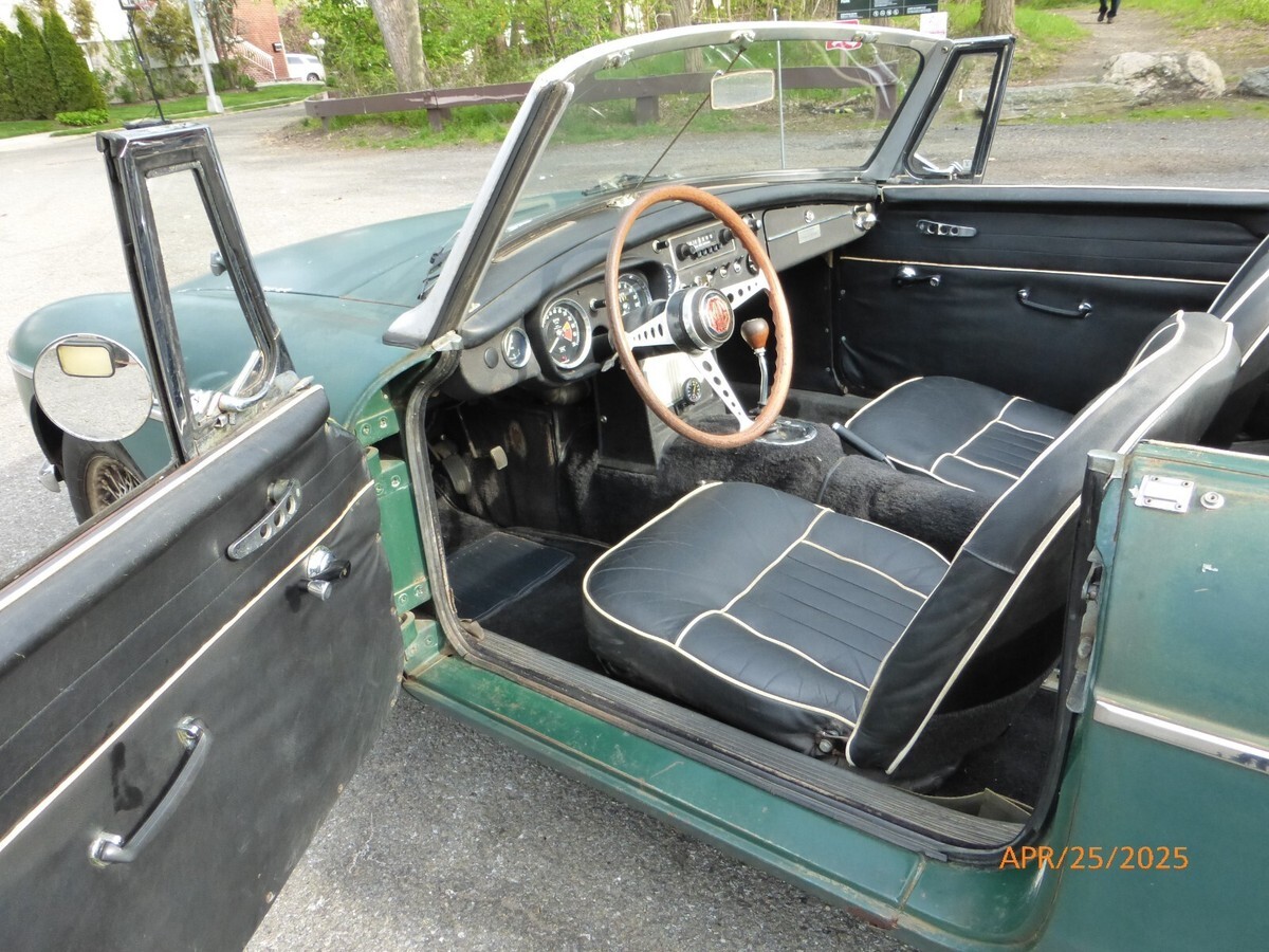 1966 MGB Pull Handle Doors Steel Dash 2 TopsWire Wheels1966 MGB that can be made into a nice driver or used as a base for a high quality restoration. The car is in British Racing Green with a black interior. It has a 4 speed transmission and it comes with 2 tops and wire wheels. It is a low ownership car and believed to still be in original paint. Odometer shows 39,400 miles which are believed to be original. It had been standing in a garage for over 10 years before being brought back into running condition. Body of the car is reasonably well preserved. Paint is showing age and the chrome is pitted. Interior is decent and can be used as it is. Mechanics are in good working order - engine starts easily and runs strong. Compression across all cylinders is 170. Transmission, brakes and clutch are working. Trunk shows some surface rust. Underside is decent - the floors seem to be in good condition. There is rust on the rocker panels on both the sides. Both the tops are usable. Car comes with a spare wheel, jack, some tools, some books and a tonneau cover. Overall this is a well preserved low mileage car that is a good car for a purist.More pictures and videos are available on our website. Visit us at Merit Cars.A walk around video of the car is located in the eBay listing (second thumbnail). (The video can be under review by eBay for up to 48 hours. This and other videos can be seen immediately on our website - see below).Direct links to videos:1. Walk around-https://www.meritcars.com/public/uploads/inventory/videos/1259/1745695893__P1290092.MP42. Forward driving, turning, brakingand reversing-https://www.meritcars.com/public/uploads/inventory/videos/1259/1745694917__P1290161.MP43. Engine starting and running-https://www.meritcars.com/public/uploads/inventory/videos/1259/1745694898__P1290160.MP44. Regular driving-https://www.meritcars.com/public/uploads/inventory/videos/1259/1745694927__P1290162.MP45. Comprehensive on YouTube-https://youtu.be/zhaq_xfNgZs6. Complete picture album (100+ pictures)-https://www.meritcars.com/1966-mg-mgb-2676We are classic car dealers located in New York, USA. More details about us are available in the “About Me” page. Visit us at Merit Cars.Buy with Confidence-see what other customers have to say about us:“Good honest people, easy to work with, good selection of cars, they are knowledgeable about market and value... Thank you. I am very happy with my classic triumph, a real gem!”. John K, NY (TR6 Customer)"Excellent communication, knowledgeable customer service". Brian M, CA (Volvo Customer)"Friendly and serious seller, vehicle conforms to the description, it's perfect thank you". Denis, France (MG Customer)"Nice people, easy transaction with timely communication. Thanks Merit Cars!". John V, VA (MG Customer)Car has a clear title from Pennsylvania. We ship all over the USA and worldwide. For overseas shipments the car ships from the port of NJ. Shipping for a car of this size in a shared container to major European ports of Rotterdam, Antwerp, Bremerhaven or Felixstowe is approx. $1200 plus a cost of $275 to transport to a shipping company's warehouse. Other European ports will be slightly higher.Please note - given the age and uniqueness of this car all sales are final. Please feel free to ask any number of questions and please feel free to ask for more pictures. You are welcome to come and inspect the car - the car is located in College Point NY 11356 - which is about 20 minutes east of New York City. However since this car is very old we possibly cannot check each and every item on the car. As such the car is strictly sold on as-is basis and all sales are final.The vehicle description above is general in nature and not to be solely relied upon by buyer. Buyer is responsible to verify authenticity, matching numbers, condition, year, model, make, type, rarity, provenance, and all other relevant information. We do test drive the vehicles represented and give our general assessment, however we do not perform comprehensive systems / component checks including but not limited to: electrical, instruments, cylinder compression, carburetion, gaskets, suspension, steering, gearbox, engine, wheels, braking system, clutch system, exhaust, fluid health, fuel system, chassis, body, paint, etc. Independent inspections are welcomes and encouraged. Seller does not make any warranties expressed / implied regarding the vehicle’s design, compliance with any manufacturer specifications or government regulation, mechanical operation/condition, safety, or any components parts. Seller makes no warranties in regards to vehicle’s mechanical road-worthiness, and Buyer agrees to perform a mechanical inspection/service before operation of vehicle. Buyer is responsible for any and all fees associated with payments made through third party transfer methods / companies / applications including but not limited to Paypal, Zelle, Venmo, etc. regardless of whether those fees are charged to the buyer’s or seller’s account. Vehicle sales do not include any government taxes or fees.Buyers with less than 15 feedback need to contact us before proceeding.Buyer must pay a $500 deposit within 48 hours of close. The final payment is to be received within 7 days of confirmation. We only accept US bank checks and wire transfers. Vehicle is listed for sale locally and subject to prior sale. Please feel free to contact us if you have any more questions. Telephone is USA-347-438-1180.