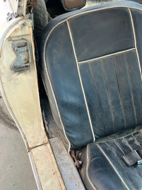 I have a good project car for someone who does that sort of thing. Its an original California car with both black plates still there.Its got a little rust. The worst being the front floors. Hard to see in the pictures but theres a couple holes. You could just patch it up or replacing those front floors is relatively easy. The engine will spin off the little starter button on the solenoid under the hood. It tries to catch but its been sitting too long without running. It needs the fuel system cleaned and ignition spark is weak. Thats as far as I got with it. Weak spark. No gas is getting to the carburetors. The up side is its all assembled and missing only a few small minor parts. I would guess it will run with some fiddling. Feel free to email any questions. Thanks for looking. Car is sold AS IS WHERE IS. Buyer responsible for transporting the vehicle to the buyers desired location. Its in an industrial zone so loading the car is not difficult. I can help with loading if necessary and arrange local transportation for a buyer who is shipping the car from a frieght forwarding warehouse. I accept bankwire and cash. No checks.