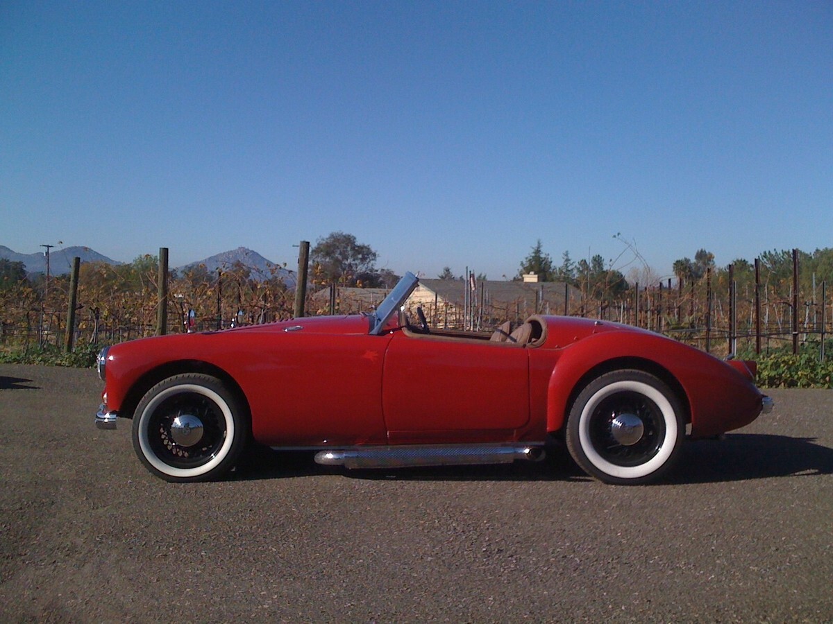 For sale is a 1958 MGA with V6 3800 Superbly built by a Nascar builder who received the V6 3800 s2 motor as a gift from his driver. He built the MGA over two years to make it just right. 99 Firebird 5 speed manual transmission to a narrowed Ford 9 inch rear end with 350 gears (professionally set up by Allen's Gear Work's)puts power to the oversized white wall radials in the back (P235/60R15 on American Racing spoke wheels). Corvette side pipes give a 60s Ferrari sound to the car. Custom axles by Moser Axle in 5 bolt Chevy pattern. Front suspension standard rack and pinion with custom caliper brakes mounting Willwood custom 4 piston aluminum calipers with stainless pistons and Chevy S10 rotors, front is also Chevy 5 bolt pattern, American racing wheels on P195/50R15s. Custom wire harness by Speed Scene Wiring, custom headers, and an O2 simulator chip plugged into the harness to simulate the catalytic converters which have been eliminated. Custom Driveshaft by Drive Shafts Inc. Its a one of a kind sweet little ride. Has sun wear on the carpet and could use a fresh sand/varnish on the dash, some paint chips on the hood at the edge of the bevels from lifting the hood by the louvers, I am working to fix all of these as we speak. The car's mechanic says that the master cylinder will have to be rebuilt at some point. Other than this shes great and probably the funnest little car you've ever driven. Lots of extras, a really sound little mod rod. This car drove me from Ohio to Southern California in the middle of August without any issue other than fatigue of the driver (no A/C, no cruise control). Must sell quick as the property is being sold and there is no where else to store her. I've had many cash offers over the years but never wanted to sell until now. Come out and see it and make me a reasonable offer and she can be yours. Any questions welcomed.