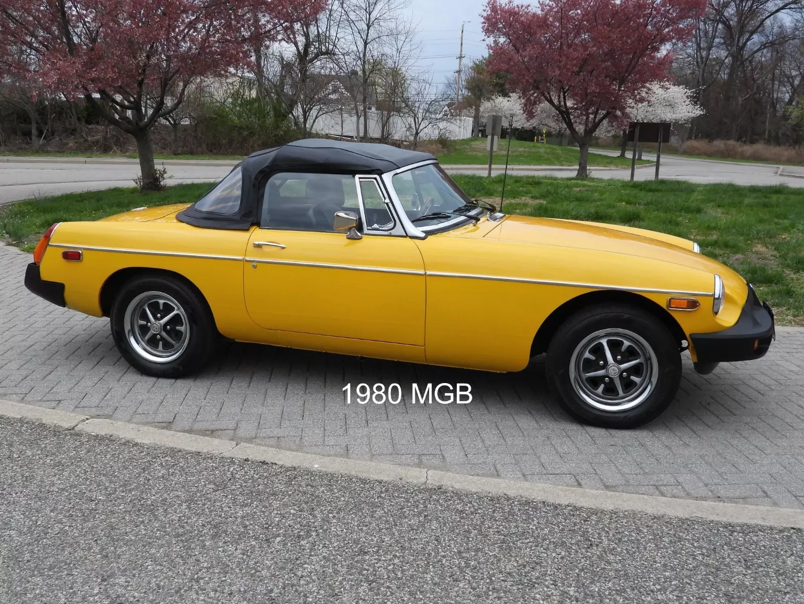 Within the past year, this 1980 MGB roadster has been under restoration that includes being repainted in factory shade of yellow. Other improvements include overhaling the heater system, power coating the valve cover, replacing the convertible top, new carpets, MG branded rubber mats, 4 tires, interior trim updates, new battery, windshield washer motor and more.