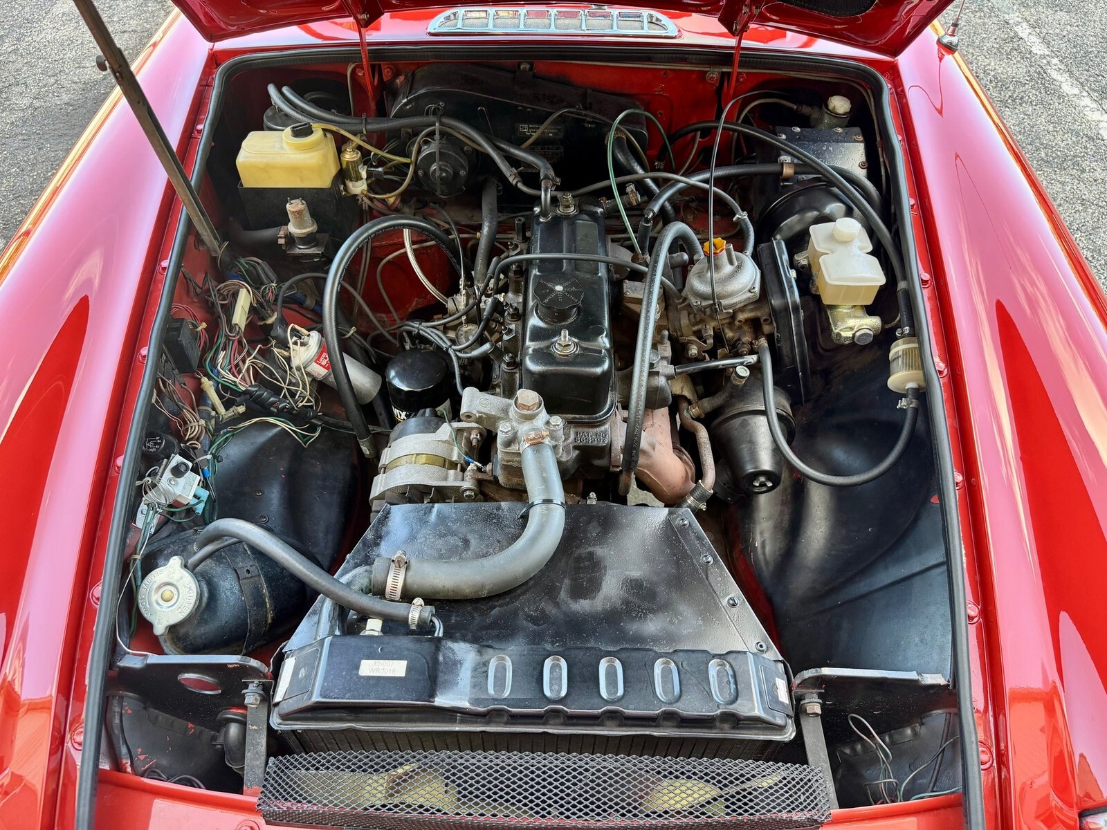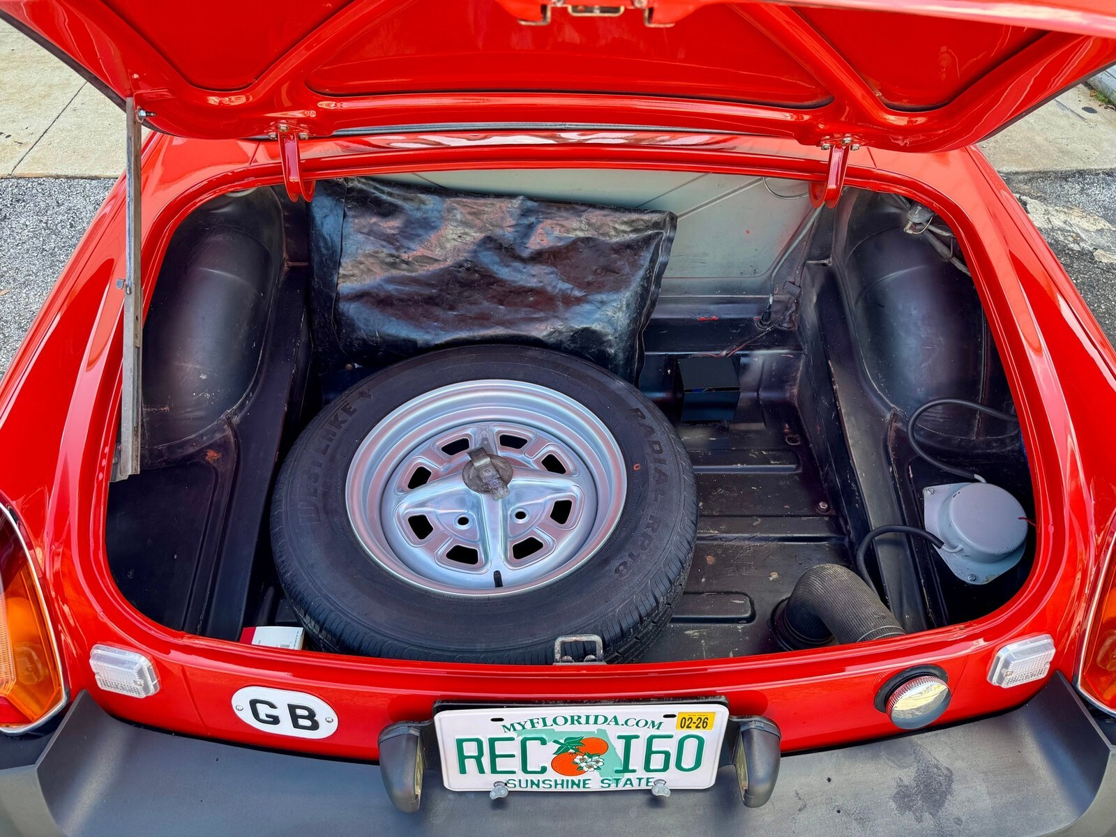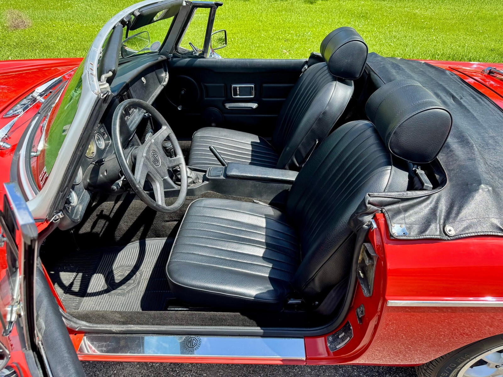 Behind the 1.8 Liter 4-cylinder engine is a 4-speed manual that is a joy to get through the gears. The exterior is beautifully painted bright Monza Red and pairs nicely with a new black top and black interior. The top is only a fewmonths old and is in great shape. This MG also comes with a convertible top boot to keep things tidy when the top is down. The top is easy to raise and lower with one person and snaps nicely into place.