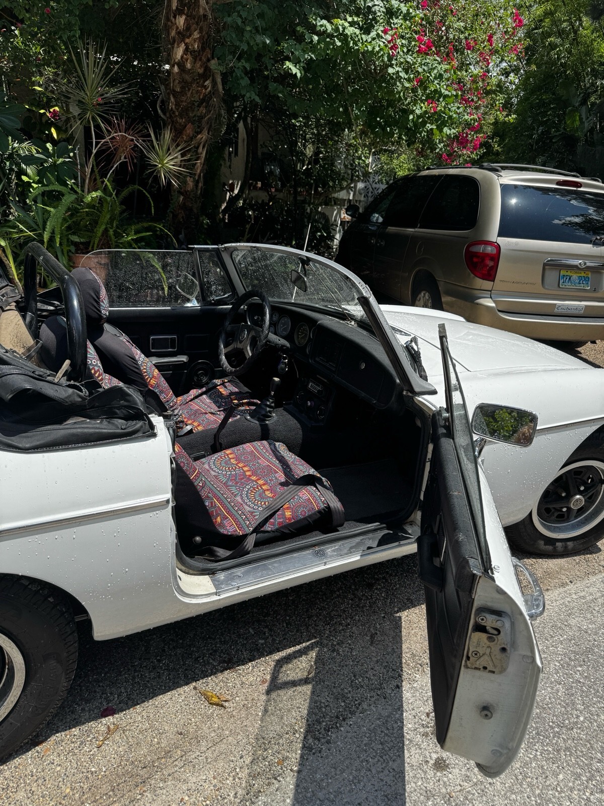 This 1970 MG MGB Mk II is a project vehicle that has been updated with new interior features. The owner has had it for 4 years and mainly uses it for weekend drives. The car runs smoothly and has a clean white color with only 67,735 miles on the odometer. Perfect for a driving enthusiast looking to personalize and enjoy a classic British sports car.