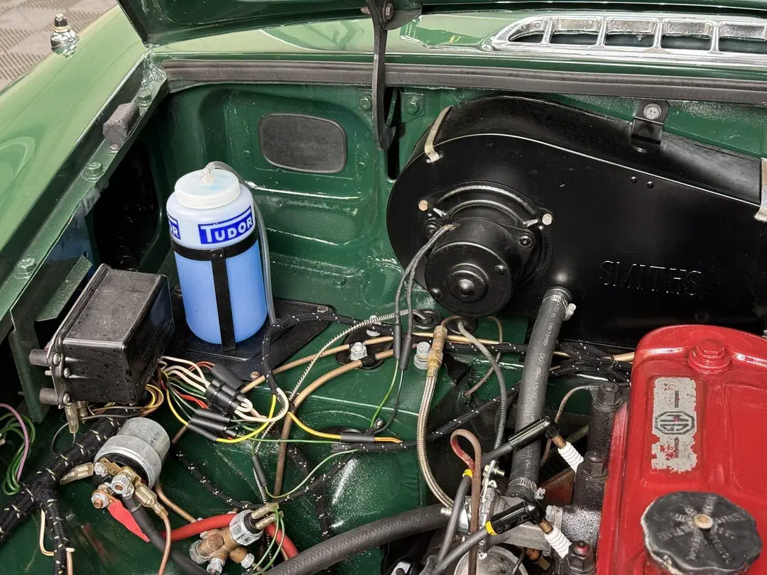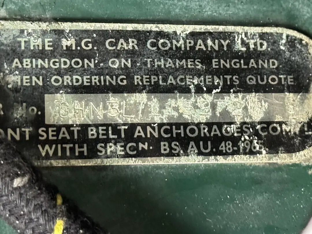 -Interior is decently trimmed with black vinyl seats correctly piped in white, with a nice cut pile carpet set, original matching panel kit, newer black crush grain vinyl soft top fitted. Original BMC transistor radio. New wiring harness fitted. PLEASE SEE WALK AROUND VIDEO.